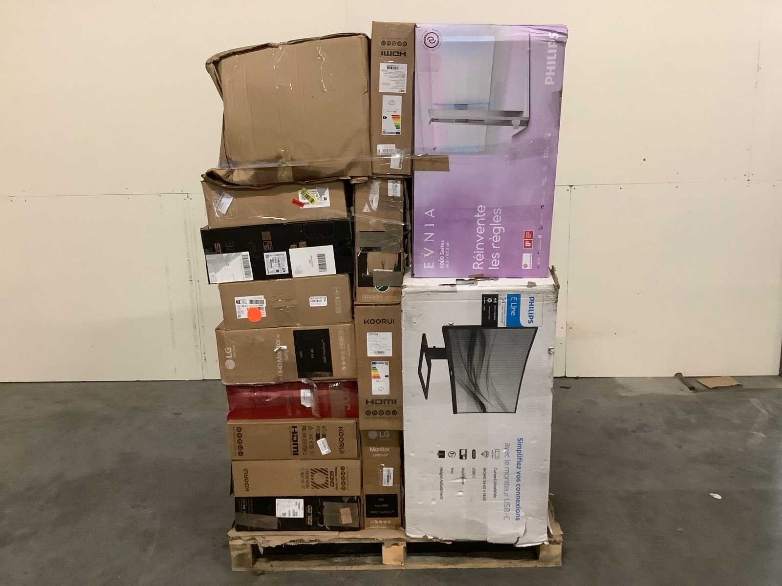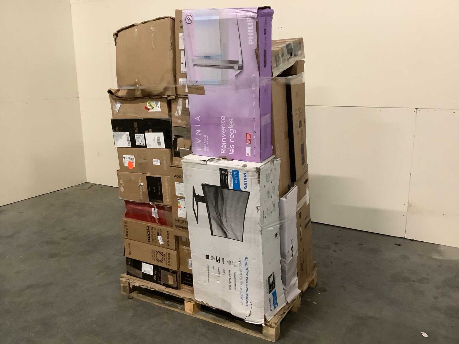 Dit betreft een partij PC Schermen / Monitors retourgoederen van een grote online retailer. De partij bestaat uit diverse diverse maten PC Schermen / Monitors. Aantal stuks: 22. Retailwaarde: €3591,- De PC chermen / Monitors zijn niet werkend en zijn te gebruiken voor onderdelen. Kom op de kijkdag om te om zo een goed beeld te krijgen van de reden van retour. Zie foto's voor lijst met inhoud. Bezorgtermijn 14 dagen Merk: Pallet Retourgoederen - PC / Monitors