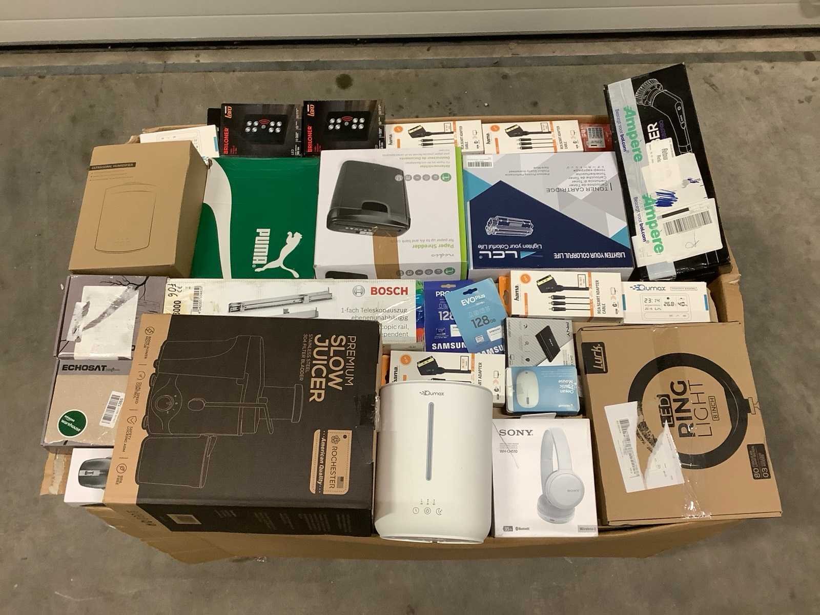 Dit betreft een partij retourgoederen van een grote online retailer. De goederen bestaan uit diverse productcategorieën. Ongecontroleerd: werking onbekend (mix van werkend, incompleet, beschadigd, te gebruiken voor onderdelen). Kom op de kijkdag om te om zo een goed beeld te krijgen van de reden van retour. Merk: Pallet
