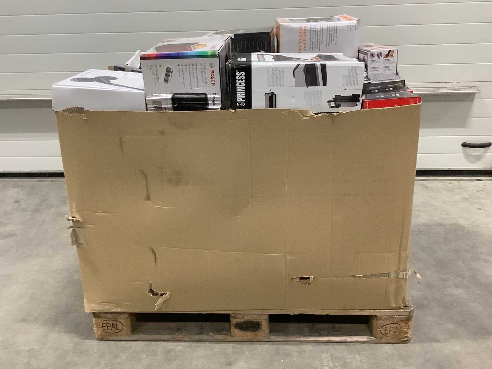 Dit betreft een partij retourgoederen van een grote online retailer. De goederen bestaan uit diverse productcategorieën. Ongecontroleerd: werking onbekend (mix van werkend, incompleet, beschadigd, te gebruiken voor onderdelen). Kom op de kijkdag om te om zo een goed beeld te krijgen van de reden van retour. Merk: Pallet