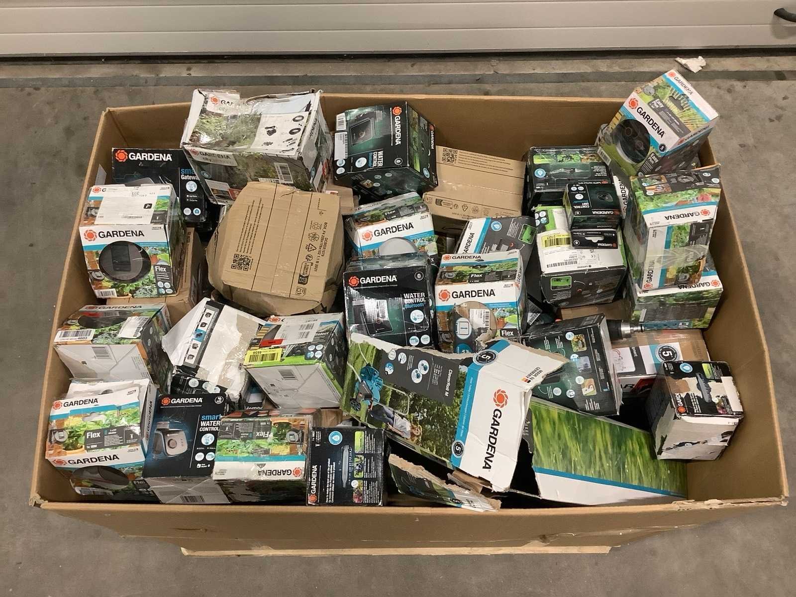 Dit betreft een partij Gardena producten afkomstig van een grote online retailer. De partij bevat diverse Gardena producten. De producten kunnen nieuw, werkend of geschikt voor onderdelen zijn. Wij adviseren om langs te komen op de kijkdag om een goed beeld te krijgen van de staat van de producten en de reden van retour. Merk: Partij Gardena