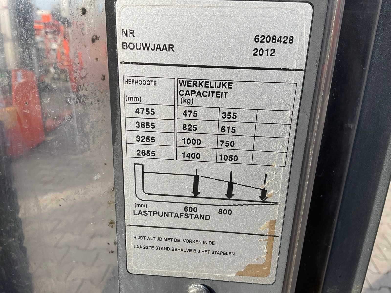 Triple mast; activation code 1 green; working condition Merk: BT Type: SWE140 Bouwjaar: 2012 Serienummer: 6208428 Hefvermogen: 1400kg Hefhoogte: 4755mm Lepellengte: 1200mm Afgelezen urenstand: 316 Eigen gewicht: 1110kg Minimale doorrijhoogte: 2250mm Totale afmeting L: 2100mm Totale afmeting Breedte: 800mm Totale afmeting Hoogte: 2200mm