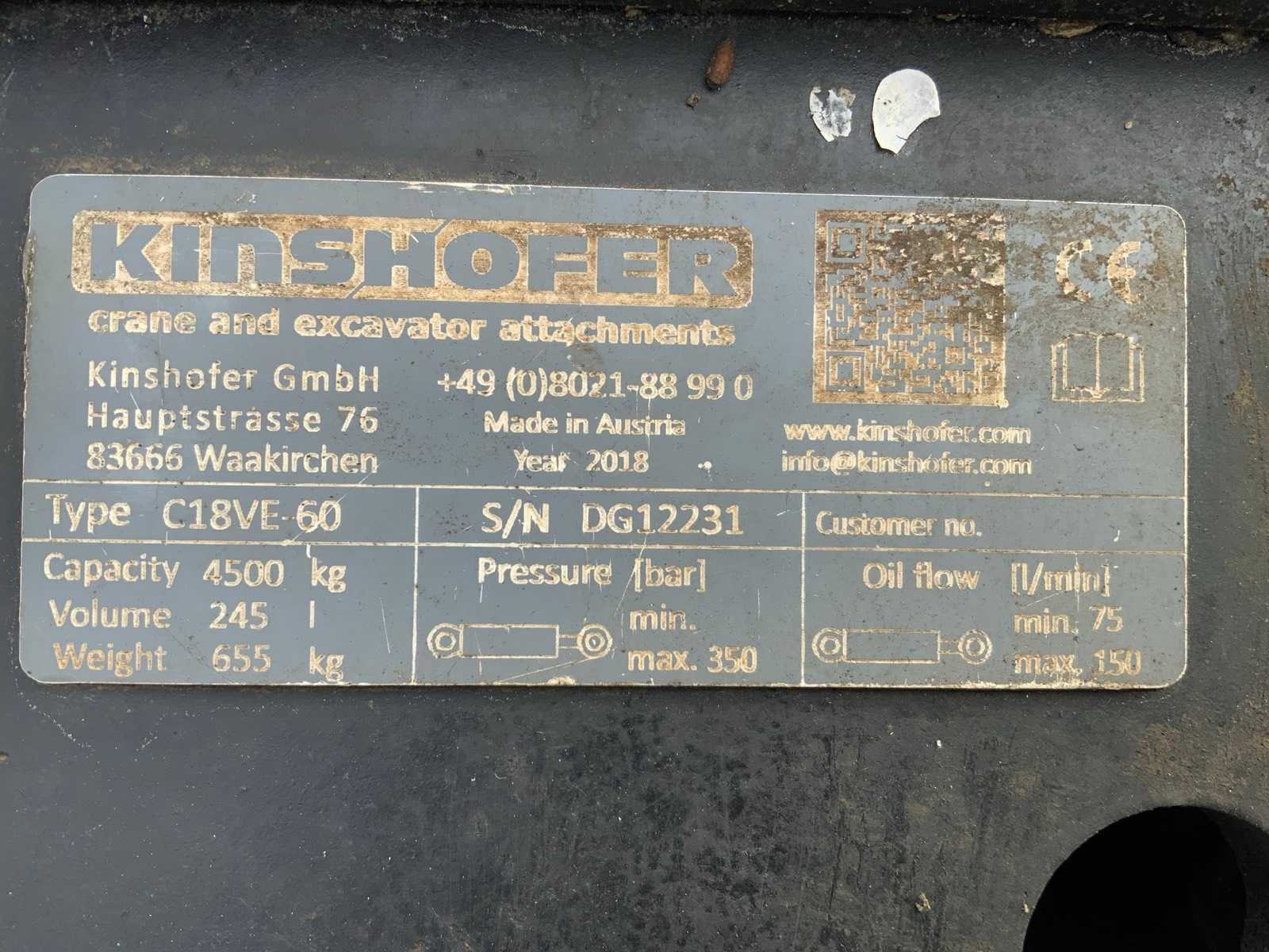 Rotator; snelwissel; inhoud 245 liter; maximaal 4500 kg, hydraulische aansluitingen; working condition not verified; Merk: Kinshofer Type: C18VE-60 Bouwjaar: 2018 Serienummer: DG12231 Graafbak afm. l: 1500mm Graafbak afm. b: 600mm Graafbak afm. h: 650mm Met tanden: true Snelwissel: true Eigen gewicht: 655kg Totale afmeting L: 1500mm Totale afmeting Breedte: 1000mm Totale afmeting Hoogte: 1700mm