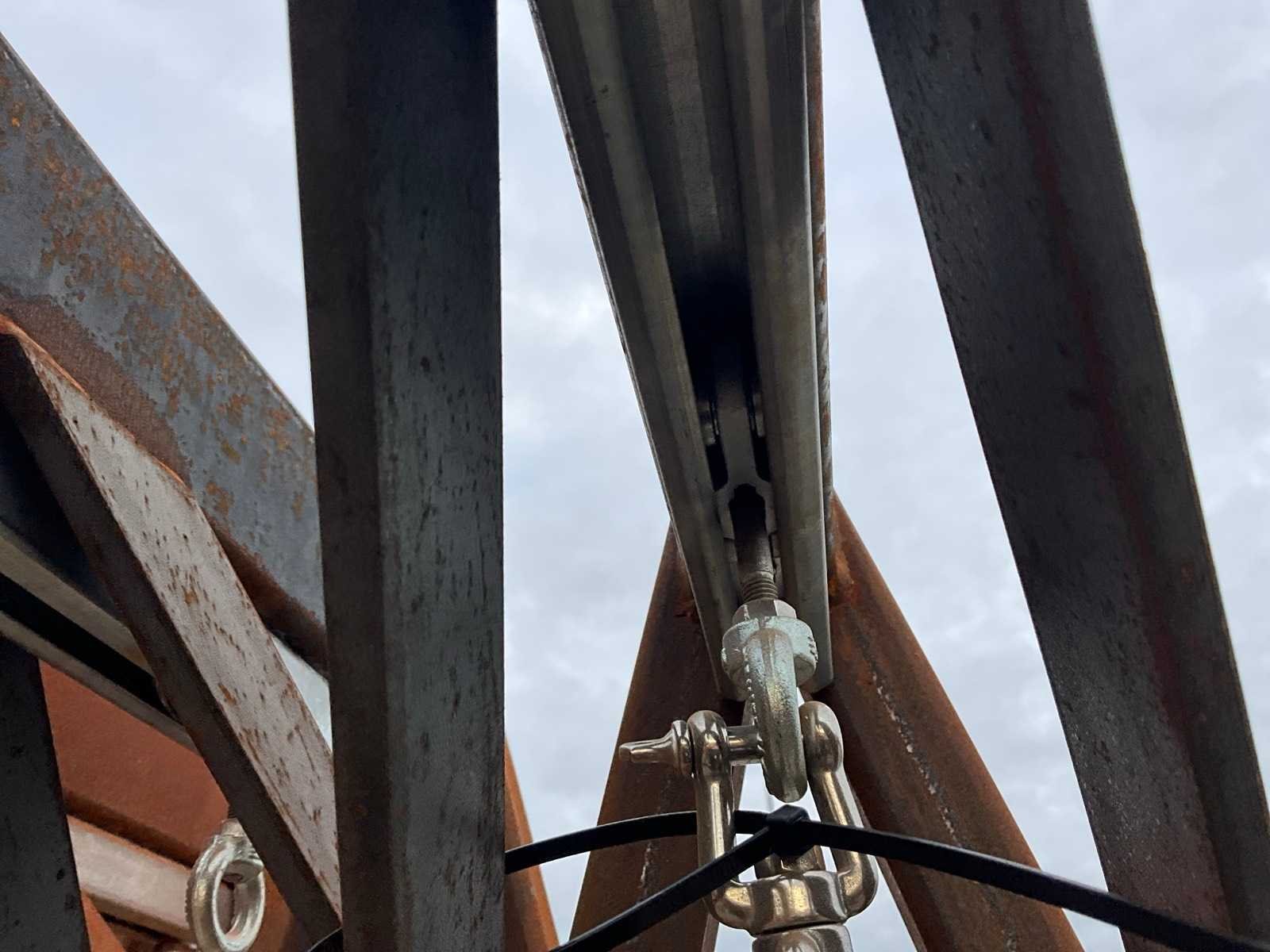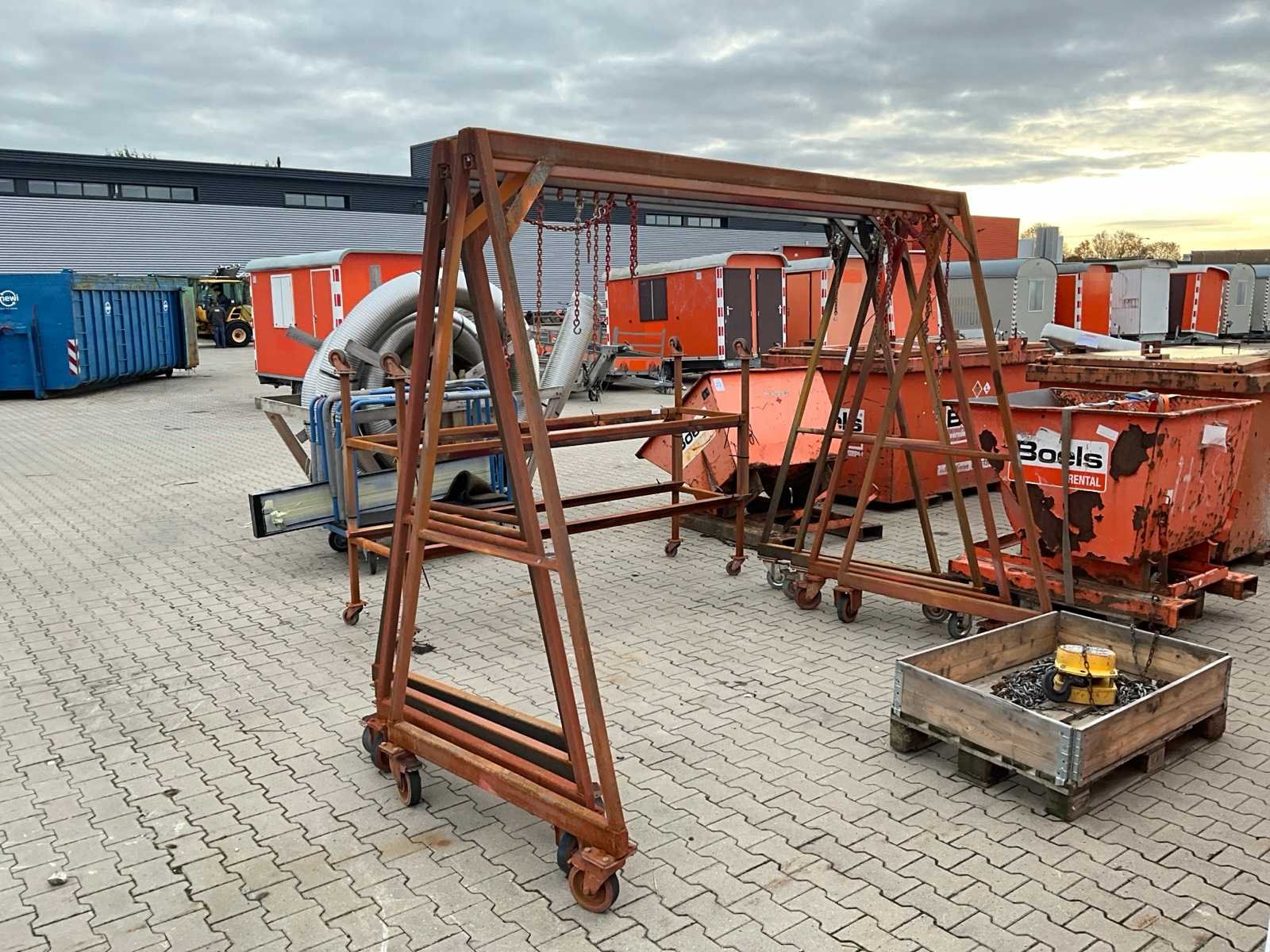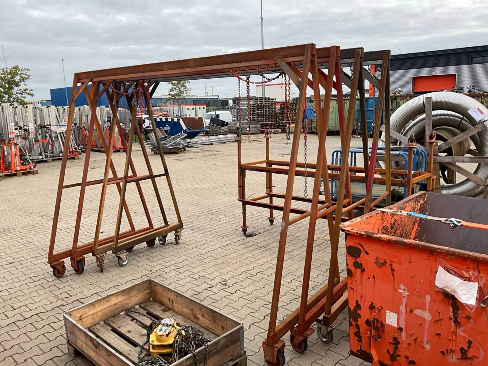 Profielstaal; 2x 4 zwenkwielen en 2x 2 zwenkwielen , Ball-tik 0 baan met ophang ogen; Lengte: 123cm Breedte: 305cm Hoogte: 230cm