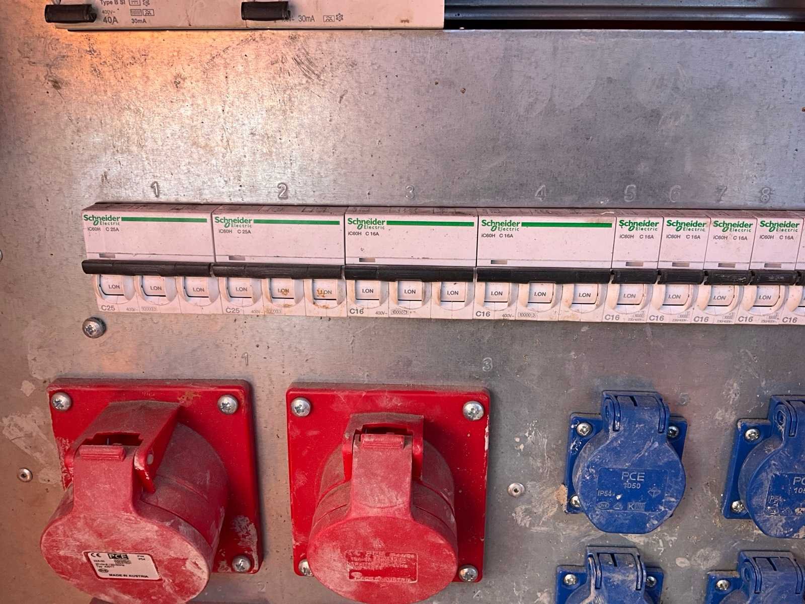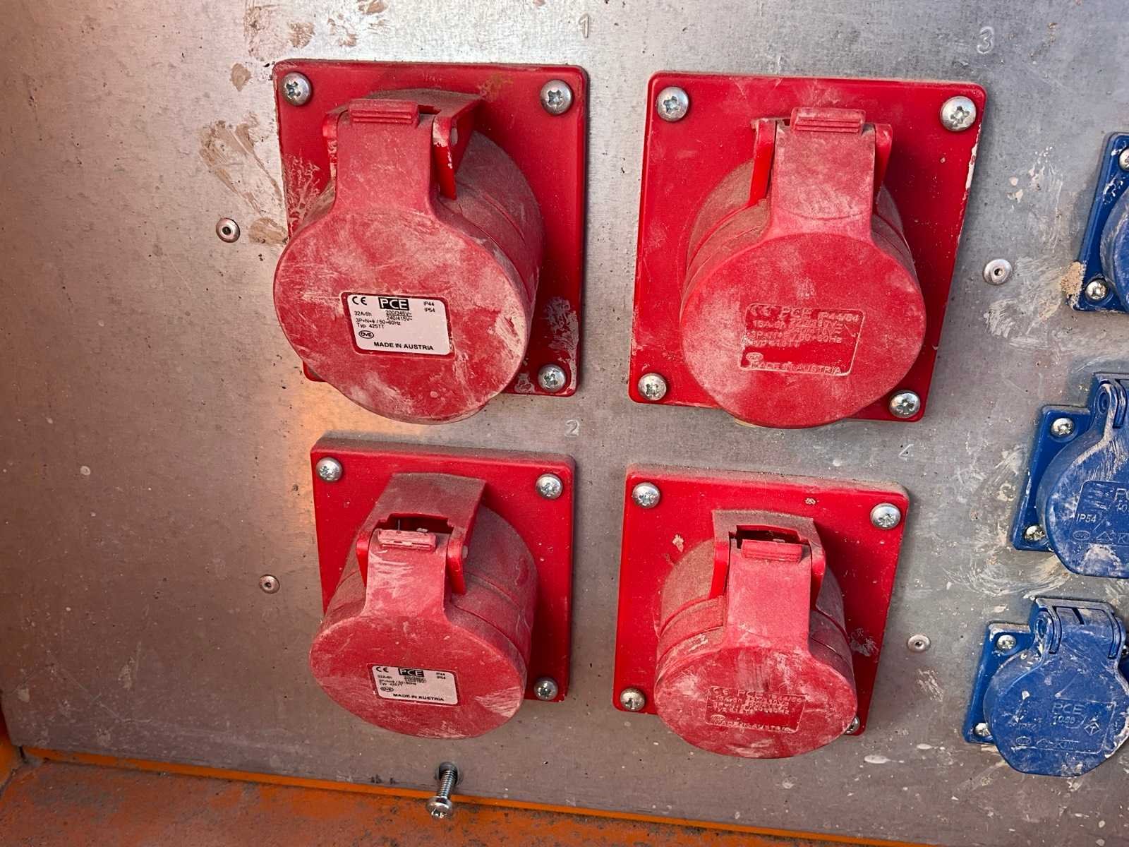 400 Volt - 32 Ampère 5-polige stekker in, 3x 400 Volt - 32 Ampère 5-polige stekker uit, 2x 400 Volt 16 Ampère 5-polige stekker uit, 6x 230 Volt; individueel afgezekerd Merk: PCE Merz Type: M-EV 32/22-6/G/E/X Bouwjaar: 2021 Serienummer: A1210050529090024 Afmeting l: 450mm Afmeting b: 750mm Afmeting h: 950mm Eigen gewicht: 50kg