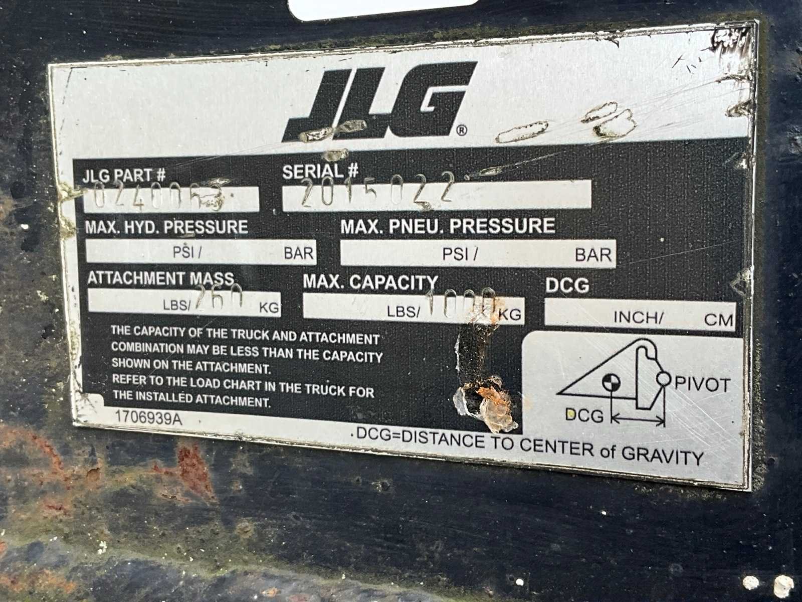 Voorzien van ahlmann aansluiting; voorzien van haak; totale lengte circa 3700 mm; Merk: JLG Type: Truijib1000K-3m-16 Serienummer: 2015022 Eigen gewicht: 260kg