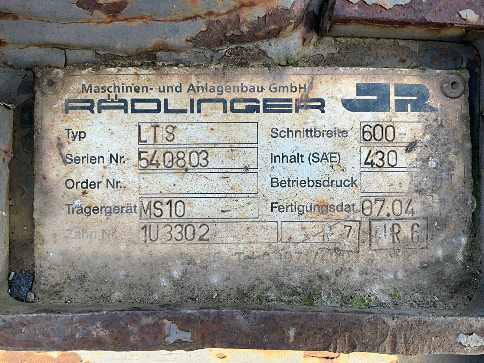 Lehnhoff SW10 snelwissel, dagmaat 750 mm, voorzien van tanden met mes; Merk: Radlinger Type: LT8 Serienummer: 540803 Totale afmeting L: 1500mm Totale afmeting Breedte: 600mm Totale afmeting Hoogte: 1150mm