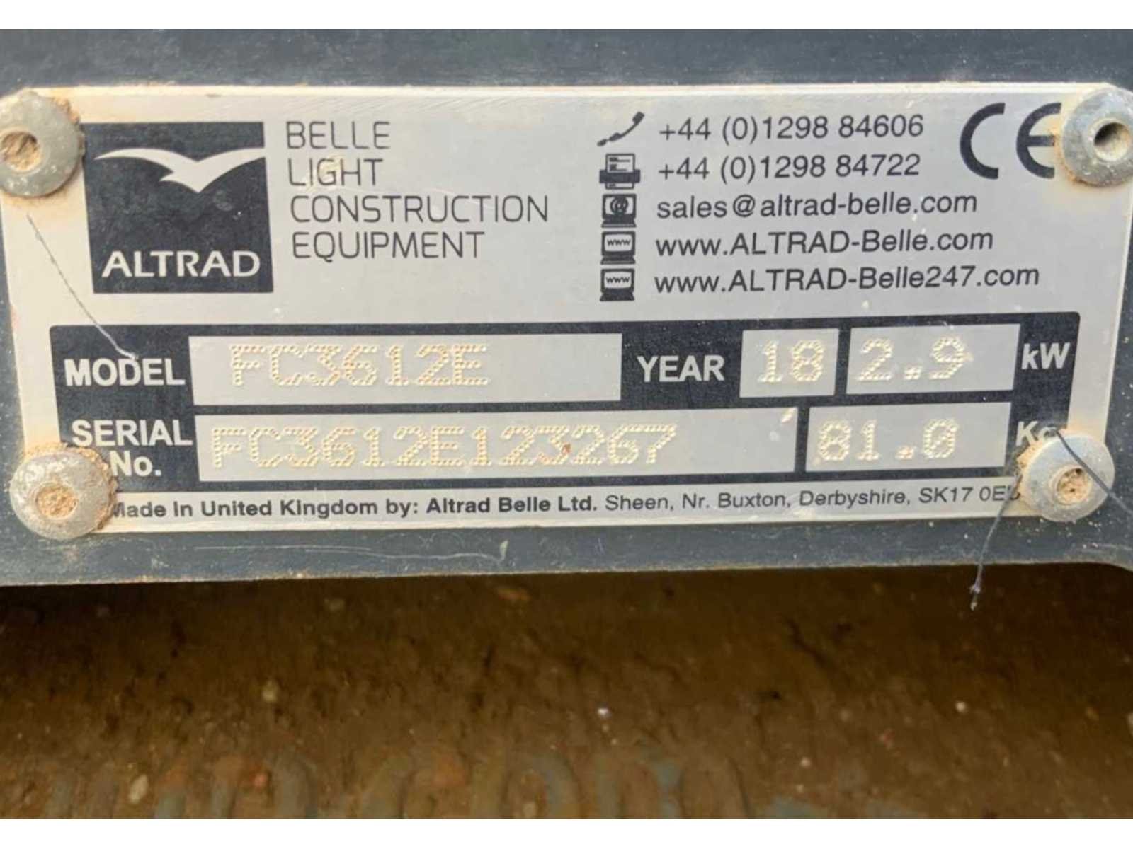 Neerklapbare beugel; wielset; toepassing: aantrillen van grond / stol / zand / klinkers / natuursteen; 4 Pk; hijsbeugel; zonder pallet; working condition not verified; Merk: Belle Type: FC3612E Bouwjaar: 2018 Serienummer: FC3612E105591 Grondplaat afm. l: 610mm Grondplaat afm. b: 350mm Centrifugale kracht: 16kN Merk motor: Honda Motorvermogen (kW): 2.9kW Brandstof: Aspen4 Eigen gewicht: 81kg Totale afmeting L: 700mm Totale afmeting Breedte: 360mm Totale afmeting Hoogte: 600mm