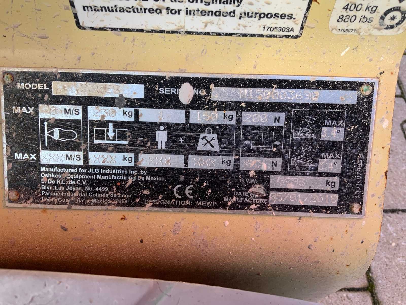 Platform vloerhoogte 3660 mm; interne acculader 230 Volt; kooibediening; 230 Volt stroom aansluiting platform; transporthoogte circa 1750 mm; not working; Merk: JLG Type: 1230ES Bouwjaar: 2018 Elektrisch: true Masthoogwerker: true Werkhoogte: 5660mm Plateau afm. l: 1300mm Plateau afm. b: 740mm Platform capaciteit: 230kg Accu lader: true Afgelezen urenstand: 371 Eigen gewicht: 790kg Totale afmeting L: 1360mm Totale afmeting Breedte: 780mm Totale afmeting Hoogte: 1630mm
