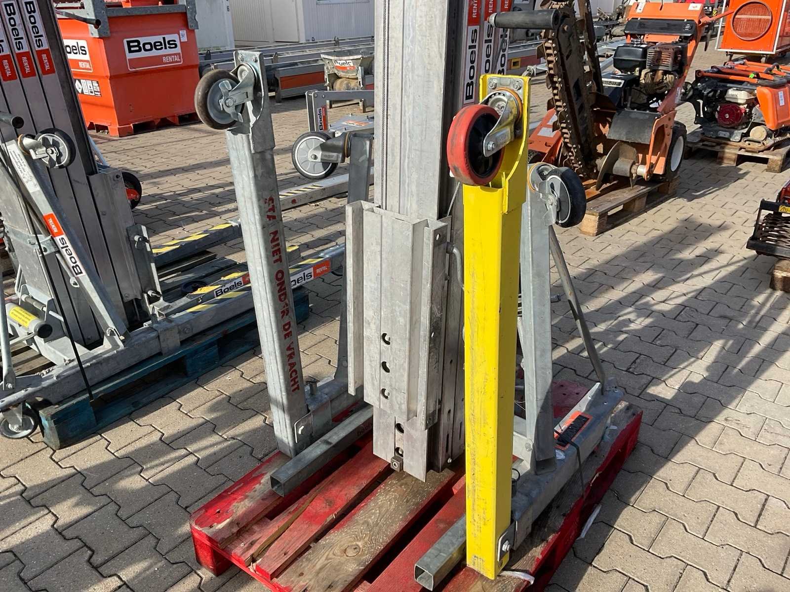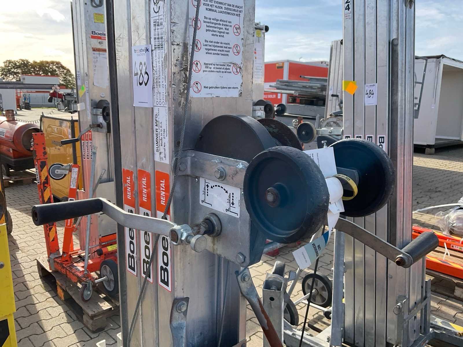 Verrijdbaar; gegalvaniseerd staal / aluminium; opklapbaar onderstel; staalkabellier; toepassing: onderhoudswerkzaamheden / montage werkzaamheden / installatie werkzaamheden; working condition not verified. Merk: Sumner Manufacturing Type: 2118 Bouwjaar: 2017 Serienummer: 27766 Handbediend: true Max. hefhoogte: 5500mm Max. hefcapaciteit: 296kg Totale afmeting L: 860mm Totale afmeting Breedte: 800mm Totale afmeting Hoogte: 2130mm Eigen gewicht: 146kg