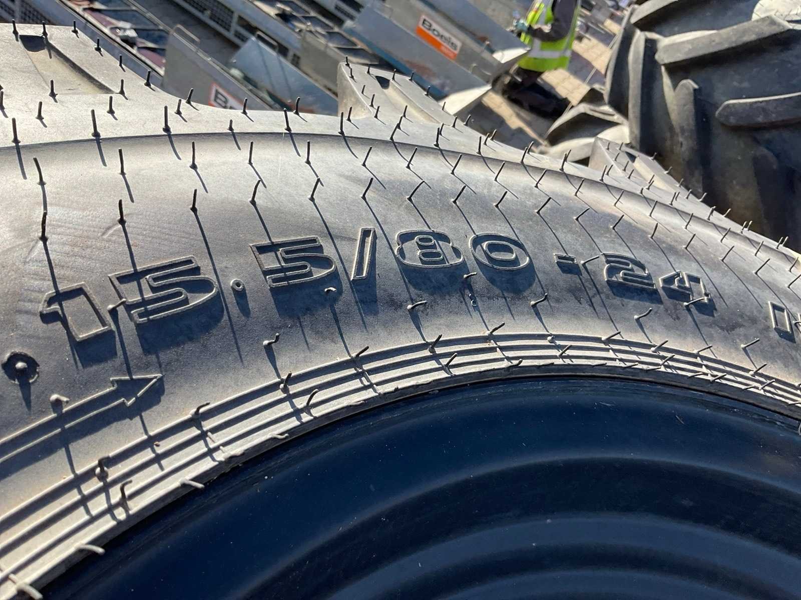 Steek circa 5x335, naafdiameter 290 mm. Merk: JCB Type: Sitemaster Bandenmaat: 15.5/80-24 Maat (getal): 24''