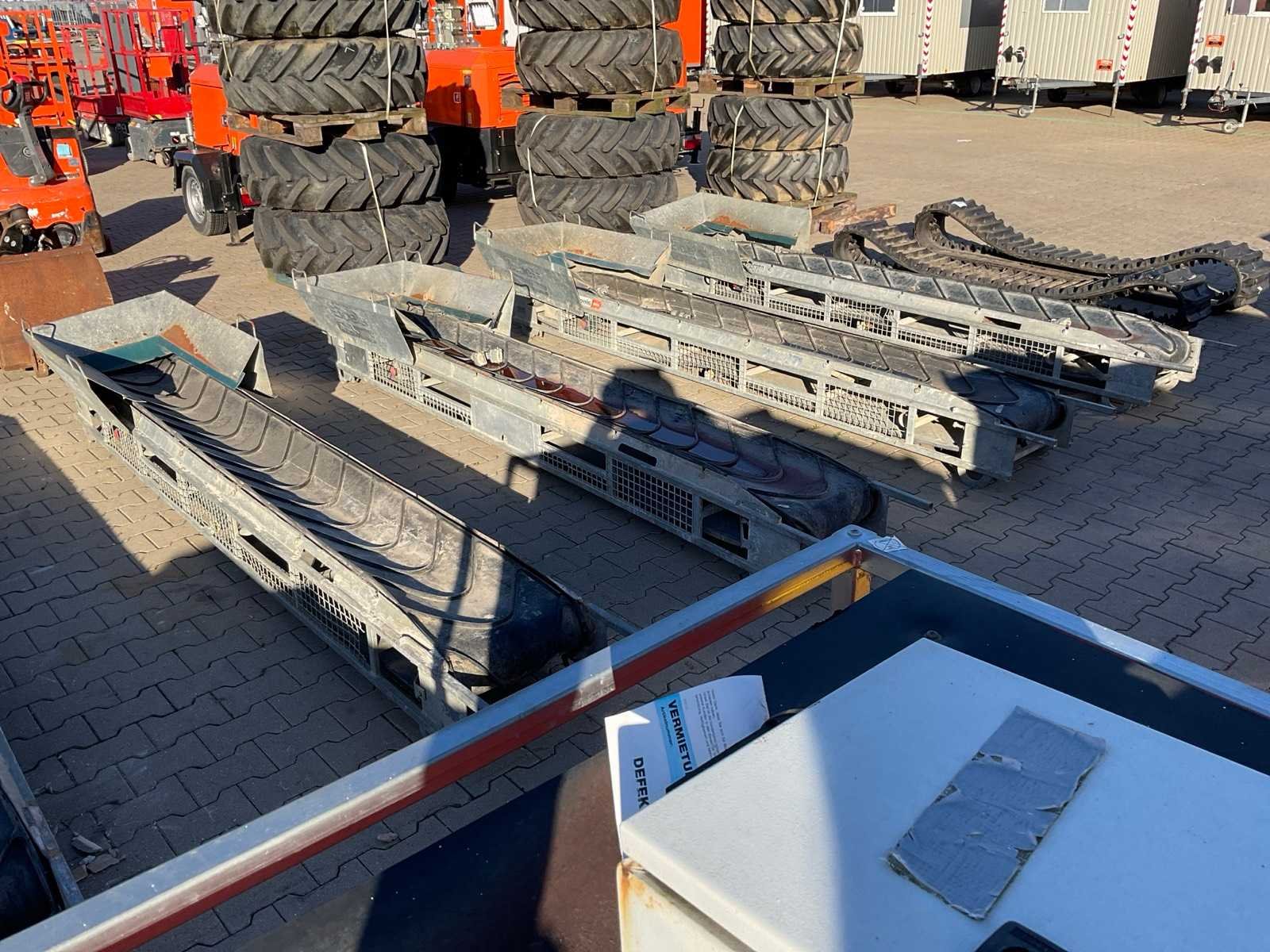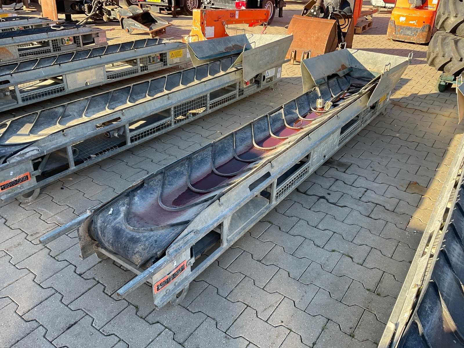 Gegalvaniseerd staal frame; capaciteit 50 ton / uur; snelheid 24 meter / minuut; maximale stijghoek 40°; maximale belasting 150 kg; 370 Watt; vultrechter; working condition not verified; Merk: 2016 Etramo Eigen gewicht: 100kg Aansluiting: 230V Band afm. l: 3000mm Totale afmeting Hoogte: 300mm Band afm. b: 400mm Totale afmeting Breedte: 500mm Totale afmeting L: 3430mm Type: Mini Maxi