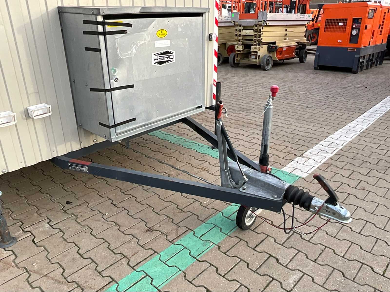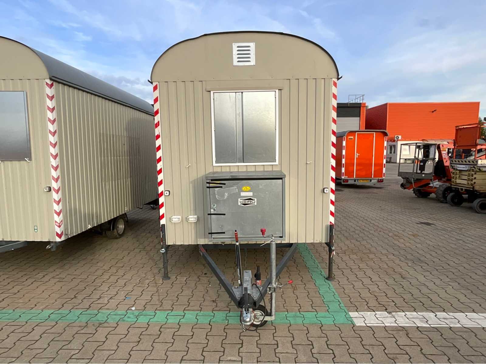 Staalplaat corpus; geremd; neuswiel; 4x stelvoet; kogelkoppeling en transportverlichting; raam voorzien van gegalvaniseerd staal luik; tafel; 2x zitbank; 3x kachel; (de koper dient bij transport over de weg zelf te voorzien in een geldig kenteken; een 7 of 9 polige aansluitstekker of verloopstuk met kabel (verlengsnoer kan ter plaatse tegen betaling aangekocht worden); eventueel extra lichtbalk; Duitse kentekenpapieren; gelijkvormigheidsattest; (M-U6856) Merk: Weiro Holzbau Bauwagen Type: Rasant 350 Bouwjaar: 2018 Chassisnummer VIN: W09353113JWH37667 Afmeting l: 3520mm Afmeting b: 2110mm Afmeting h: 2450mm Aantal ramen: 1 Totale afmeting L: 5120mm Totale afmeting Breedte: 2110mm Totale afmeting Hoogte: 2930mm