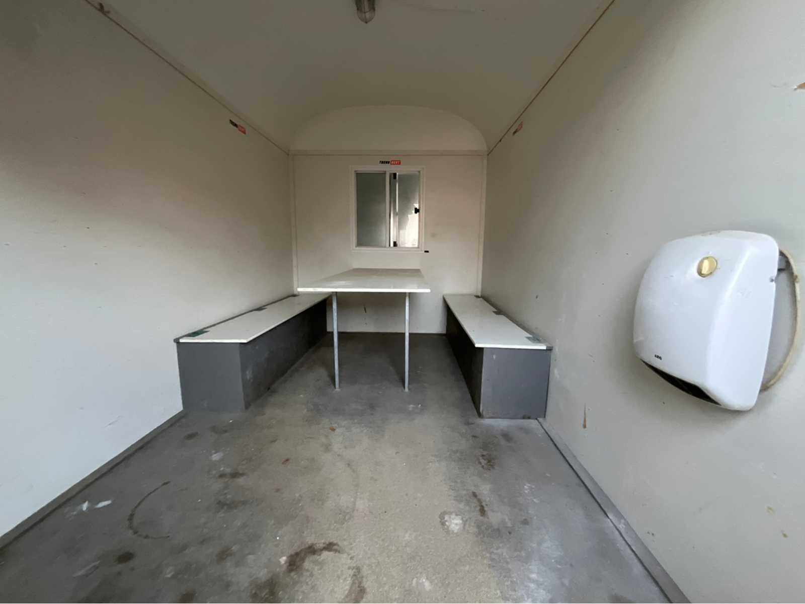 Staalplaat corpus; geremd; neuswiel; 4x stelvoet; kogelkoppeling en transportverlichting; 1x deur; raam voorzien van gegalvaniseerd staal luik; tafel; 2x zitbank; kachel; 2x band lek; (de koper dient bij transport over de weg zelf te voorzien in een geldig kenteken; een 7 of 9 polige aansluitstekker of verloopstuk met kabel (verlengsnoer kan ter plaatse tegen betaling aangekocht worden); eventueel extra lichtbalk; Duitse kentekenpapieren; gelijkvormigheidsattest; (M-O9792) Merk: Weiro Holzbau Bauwagen Type: Rasant 350 Bouwjaar: 2015 Chassisnummer VIN: W09351113FWH37947 Afmeting l: 3520mm Afmeting b: 2110mm Afmeting h: 2450mm Aantal ramen: 1 Totale afmeting L: 5120mm Totale afmeting Breedte: 2110mm Totale afmeting Hoogte: 2930mm
