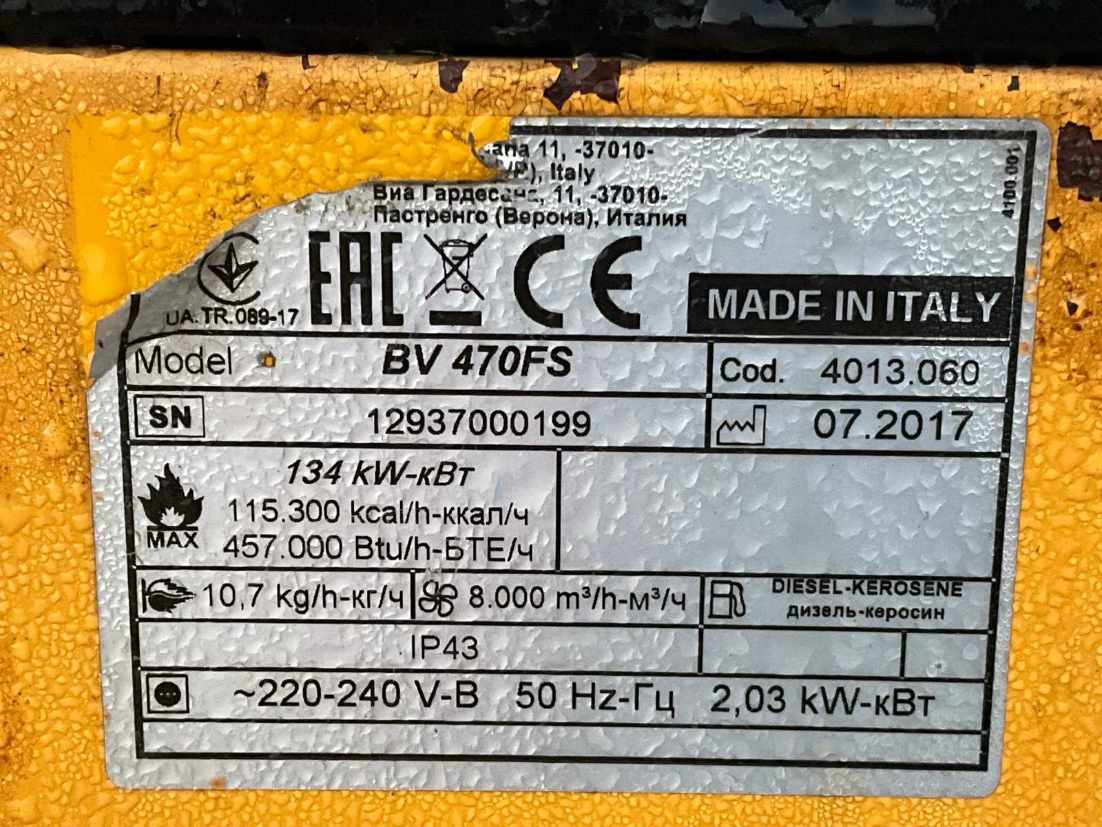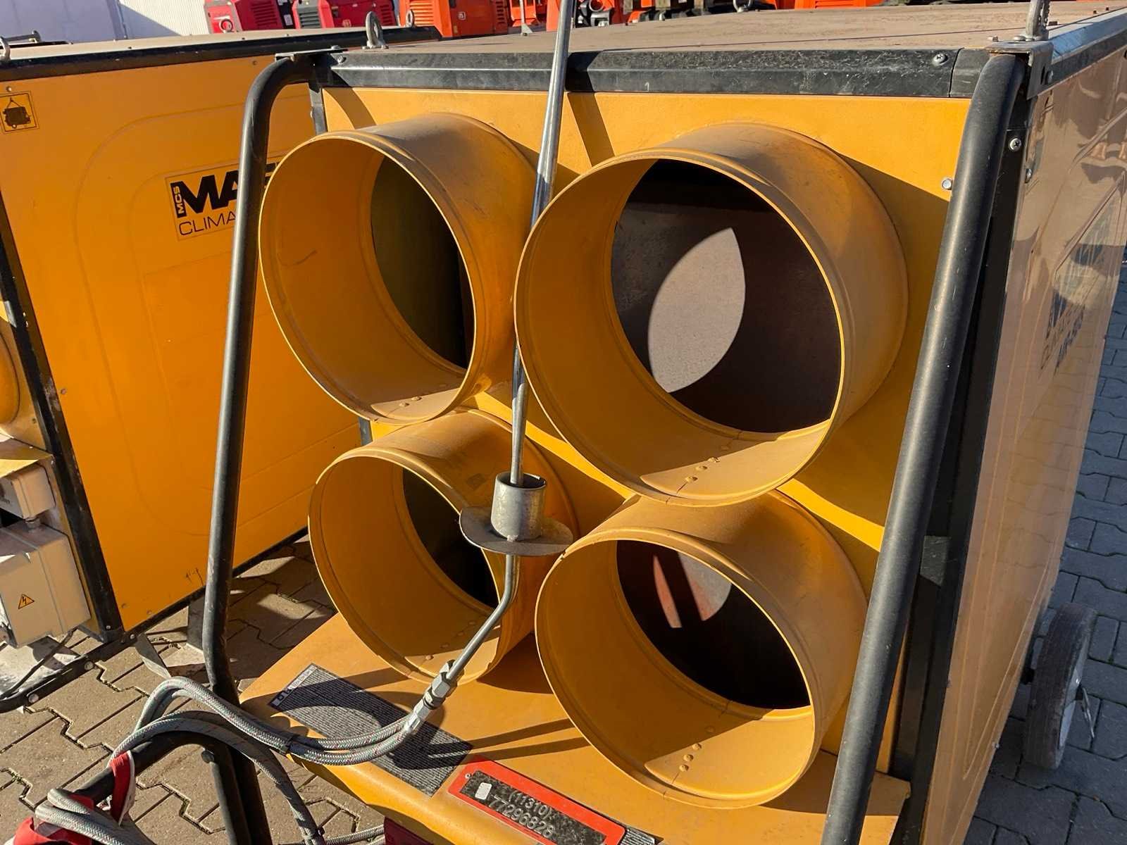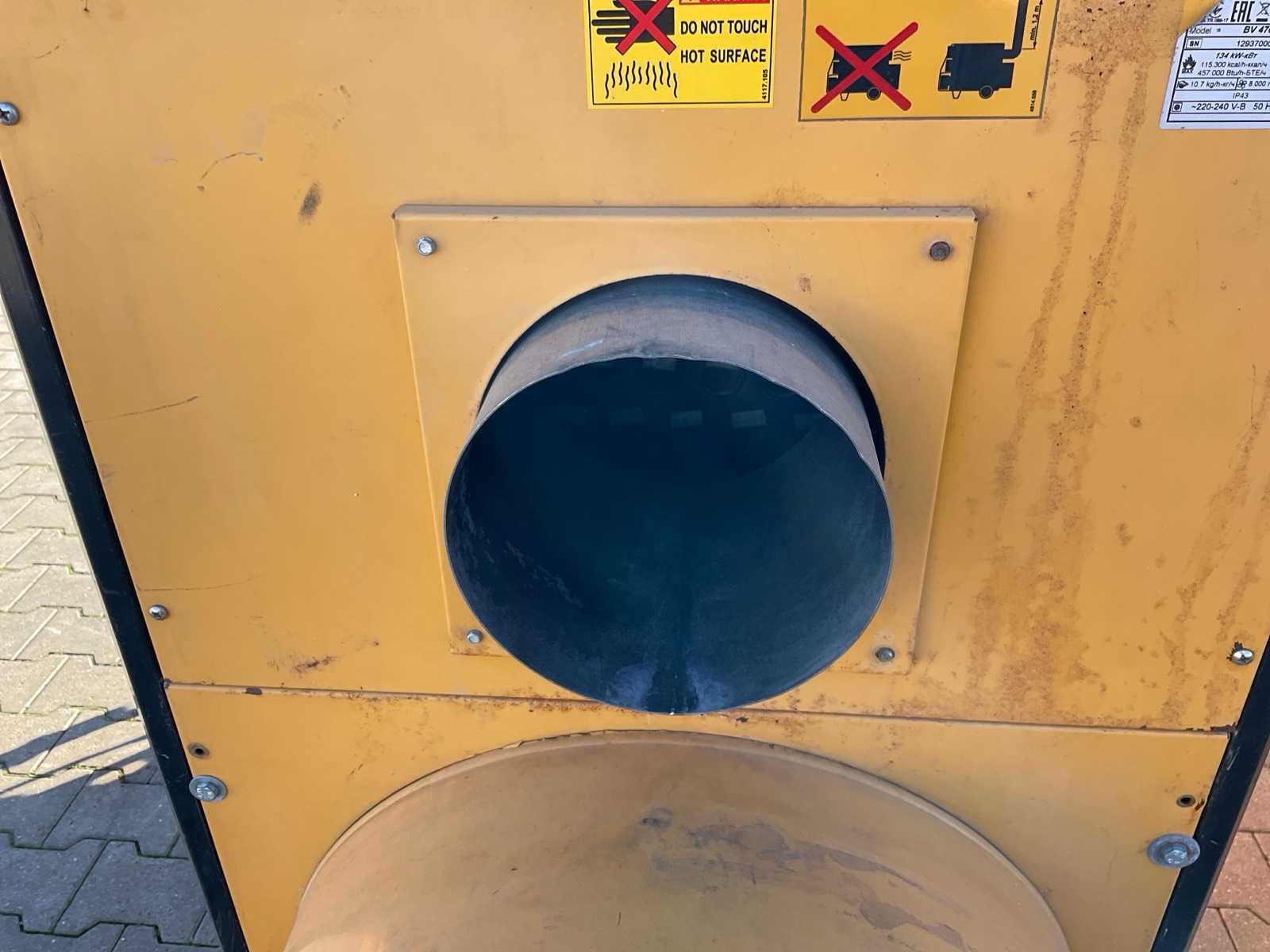 Vermogen: 134,00 kW; ventilator: ja; totale afmeting L: 1700 mm; totale afmeting B: 900 mm; totale afmeting H: 1650 mm; aansluiting: 230 V; omschrijving: verrijdbaar; diesel gestookt; brander Riello; volumestroom 8000 m3 / uur; 230 Volt; 8,8 Ampère; 2 kW; 4x luchtuitlaat diam. 270 mm; rookgasafvoer; brandstofleiding; 1x wiel krom; working condition not verified; Merk: MCS Type: Master Air-Bus BV 470 FS Bouwjaar: 2017 Serienummer: 12937000199 Totale afmeting L: 1700mm Totale afmeting Breedte: 900mm Totale afmeting Hoogte: 1650mm