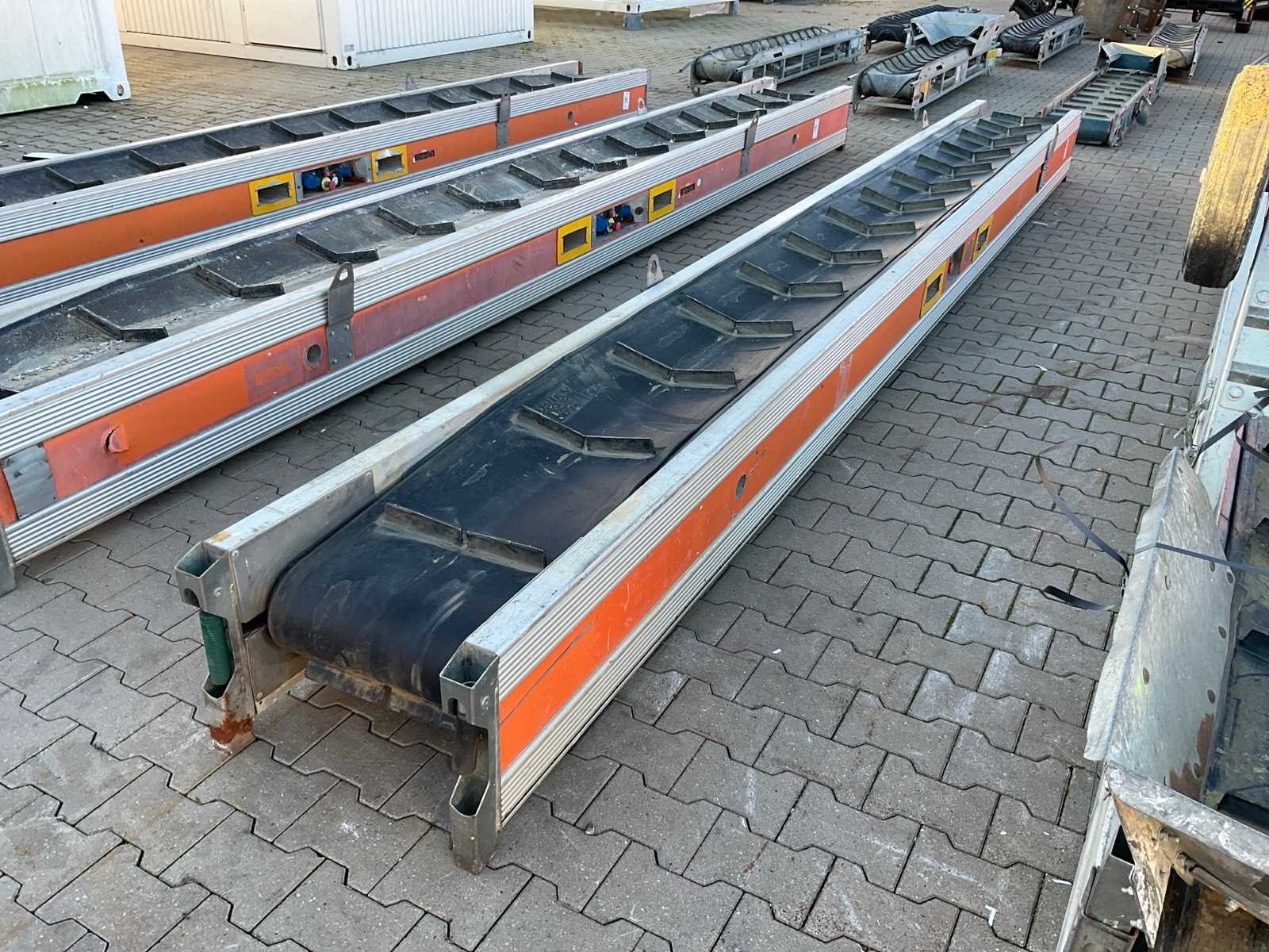 Aluminium / staal frame; capaciteit 150 ton / uur; snelheid 45 meter / minuut; stijghoek maximaal 40°; maximale belasting 200 kg; 1500 Watt; 11 Ampère; heftruck vorksleuven; working condition not verified; Merk: Conveya Eigen gewicht: 200kg Aansluiting: 230V Band afm. l: 5700mm Totale afmeting Hoogte: 400mm Band afm. b: 450mm Totale afmeting Breedte: 600mm Totale afmeting L: 5860mm Type: Invader 45