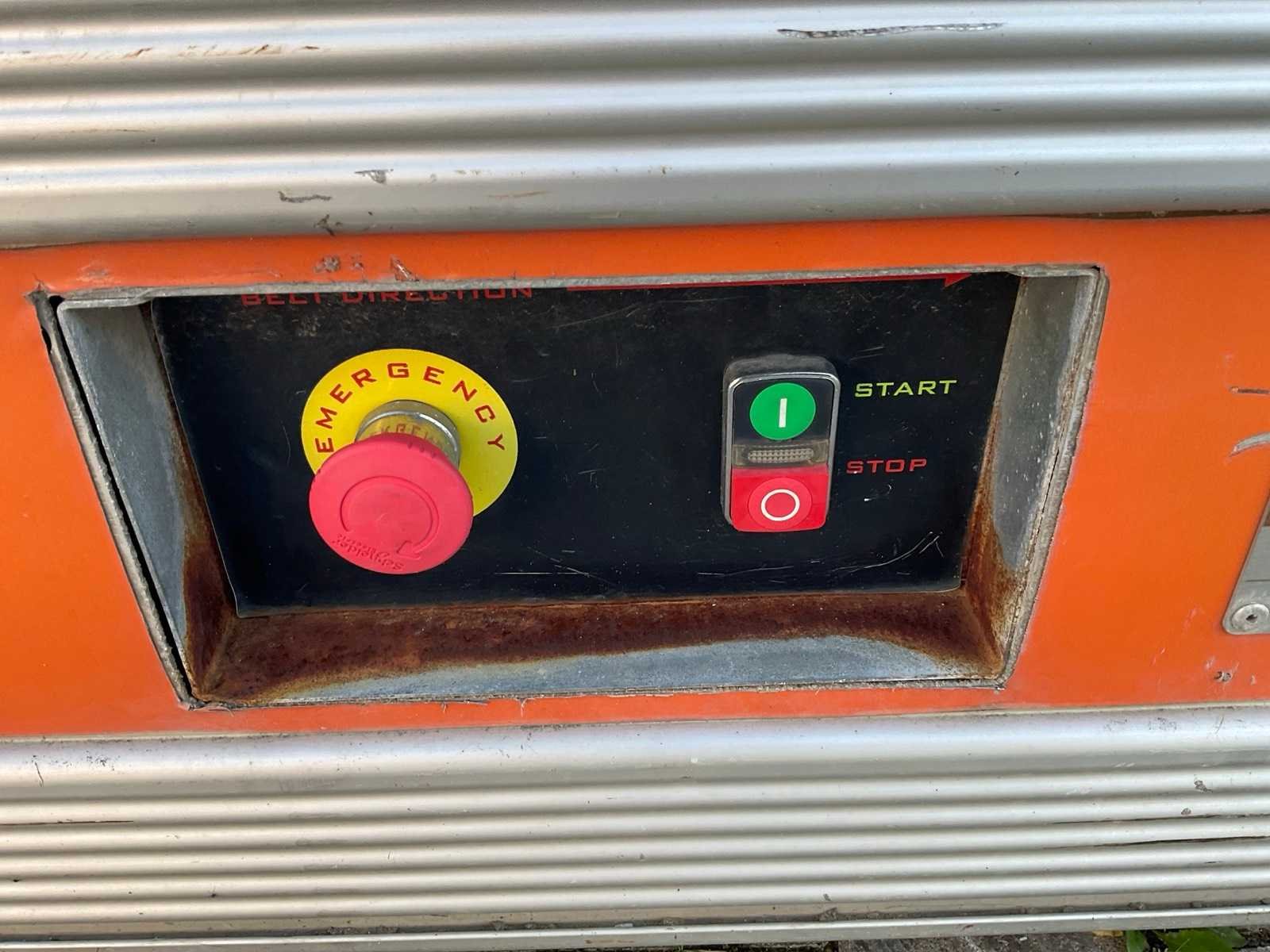 Aluminium / staal frame; capaciteit 150 ton / uur; snelheid 45 meter / minuut; stijghoek maximaal 40°; maximale belasting 200 kg; 1500 Watt; 11 Ampère; heftruck vorksleuven; working condition not verified. Merk: Conveya Eigen gewicht: 200kg Aansluiting: 230V Band afm. l: 5700mm Totale afmeting Hoogte: 400mm Band afm. b: 450mm Totale afmeting Breedte: 600mm Totale afmeting L: 5860mm Bouwjaar: 2019 Type: Invader 45