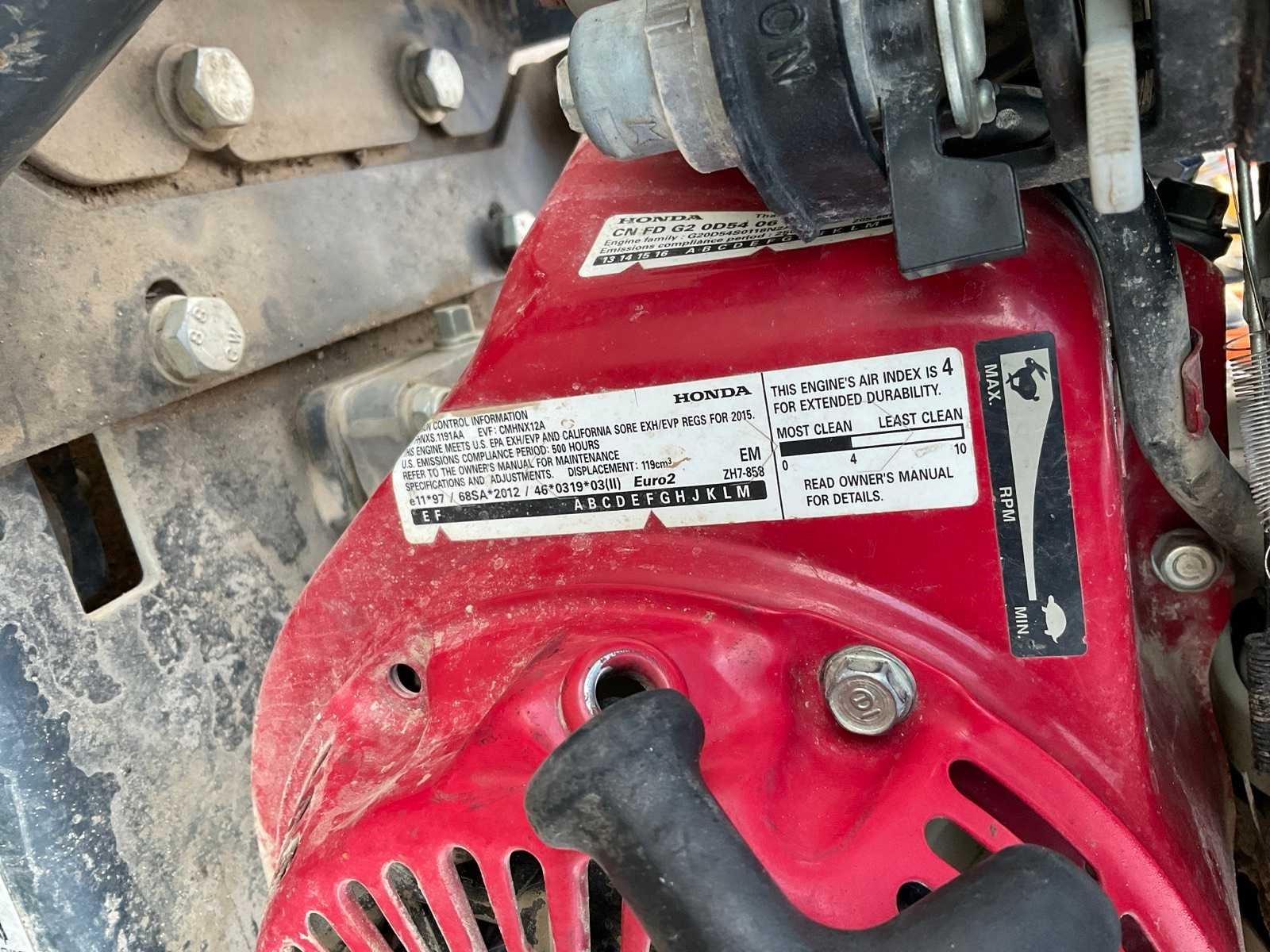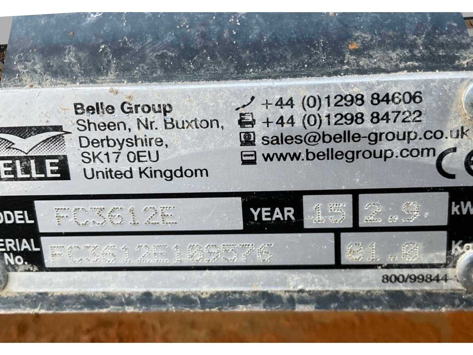 Neerklapbare beugel; wielset; toepassing: aantrillen van grond / stol / zand / klinkers / natuursteen; 4 Pk; hijsbeugel; working condition; Merk: Belle Type: FC3612E Bouwjaar: 2015 Serienummer: FC3612E109576 Grondplaat afm. l: 610mm Grondplaat afm. b: 360mm Centrifugale kracht: 16kN Merk motor: Honda GX120 Motorvermogen (kW): 2.9kW Brandstof: Aspen4 Eigen gewicht: 81kg Totale afmeting L: 1050mm Totale afmeting Breedte: 400mm Totale afmeting Hoogte: 1000mm