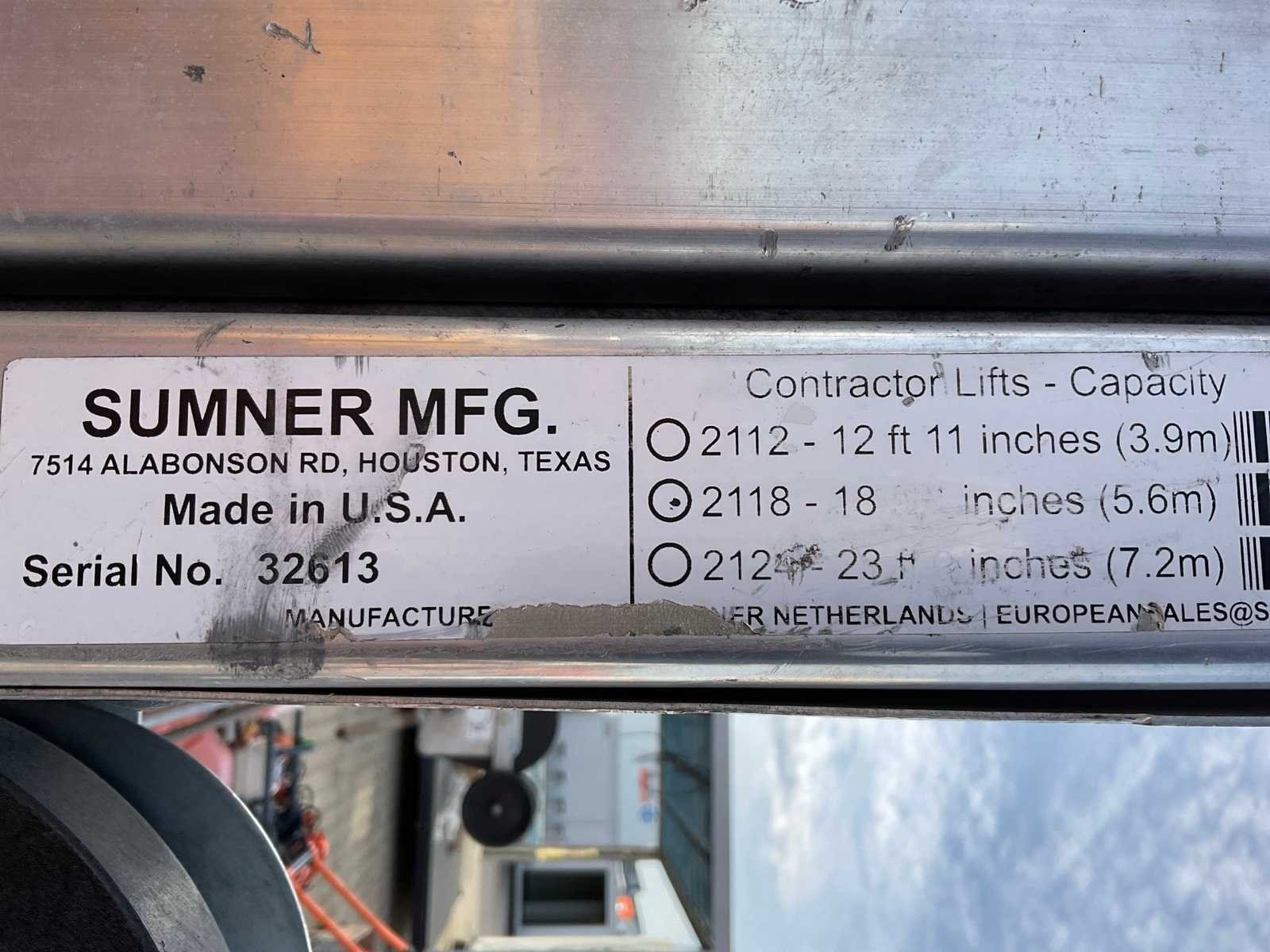 Verrijdbaar; gegalvaniseerd staal / aluminium; opklapbaar onderstel; staalkabellier; toepassing: onderhoudswerkzaamheden / montage werkzaamheden / installatie werkzaamheden; working condition not verified. Merk: Sumner Manufacturing Type: 2118 Serienummer: 32613 Handbediend: true Max. hefhoogte: 5500mm Max. hefcapaciteit: 296kg Totale afmeting L: 860mm Totale afmeting Breedte: 800mm Totale afmeting Hoogte: 2130mm Eigen gewicht: 146kg