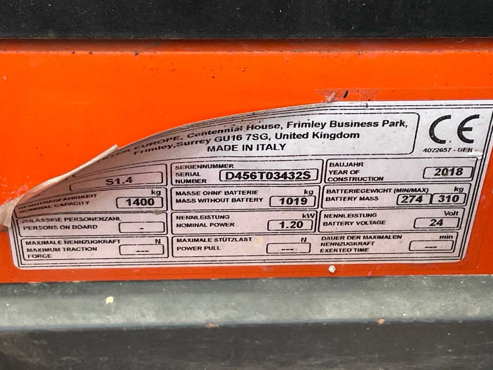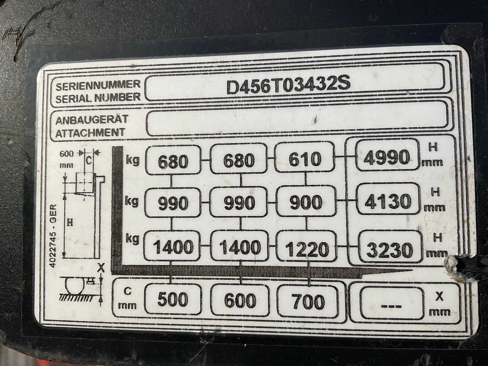 Triple mast; ingebouwde acculader; blijft alarmsignaal geven; working condition; Merk: Hyster Type: S1.4 Bouwjaar: 2018 Serienummer: D456T03432S Hefvermogen: 1400kg Hefhoogte: 4990mm Lepellengte: 1150mm Afgelezen urenstand: 282 Minimale doorrijhoogte: 2200mm Totale afmeting L: 2200mm Totale afmeting Breedte: 800mm Totale afmeting Hoogte: 2150mm Accu lader: true