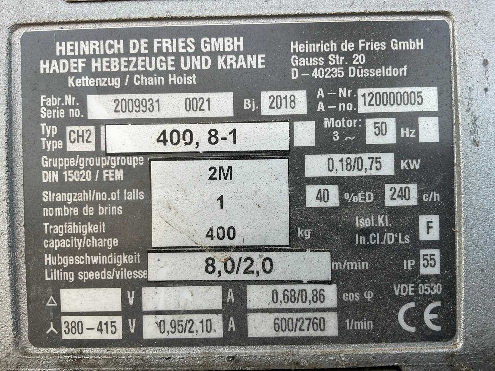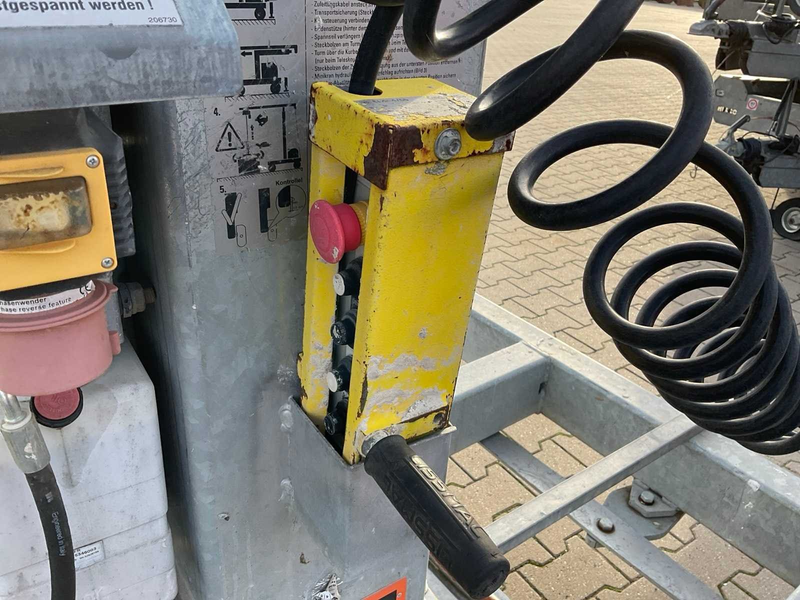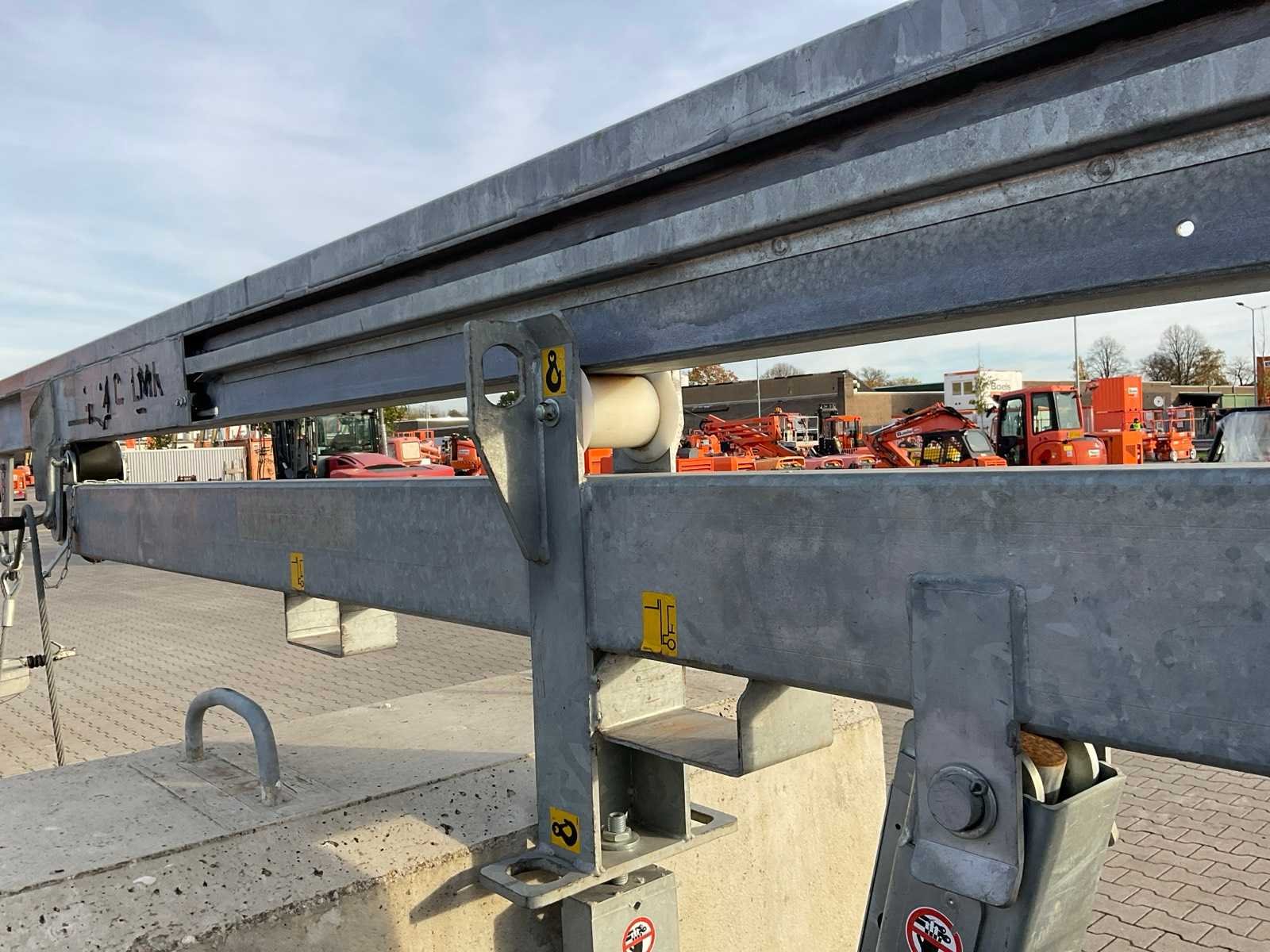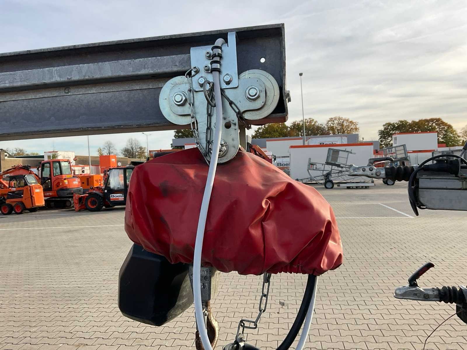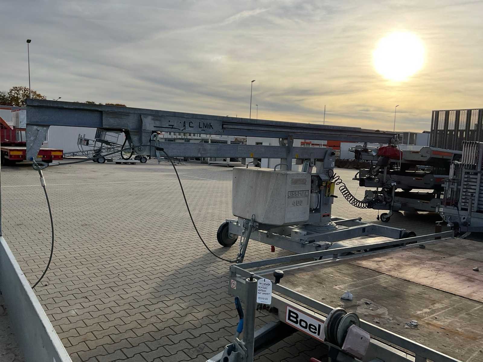 Stellift; verrijdbaar; gegalvaniseerd staal frame; duwloopkat; elektrische takel Heinrich de Fries CH2 400, 8-1; ballast betonblok; elektro hydraulische demontage en montage; telescopische mast; armlengte 5000 mm; haakhoogte 4500 - 6000 mm; opbouw staalkabel; working condition not verified; Merk: Lissmac Type: LMK400 TFE Bouwjaar: 2019 Serienummer: SN027036 Max. hijscapaciteit: 500kg Max. mastlengte: 4m Met afstandsbediening (bedraad): true Aansluiting: 400V Eigen gewicht: 2100kg Totale afmeting L: 6100mm Totale afmeting Breedte: 2100mm Totale afmeting Hoogte: 2000mm