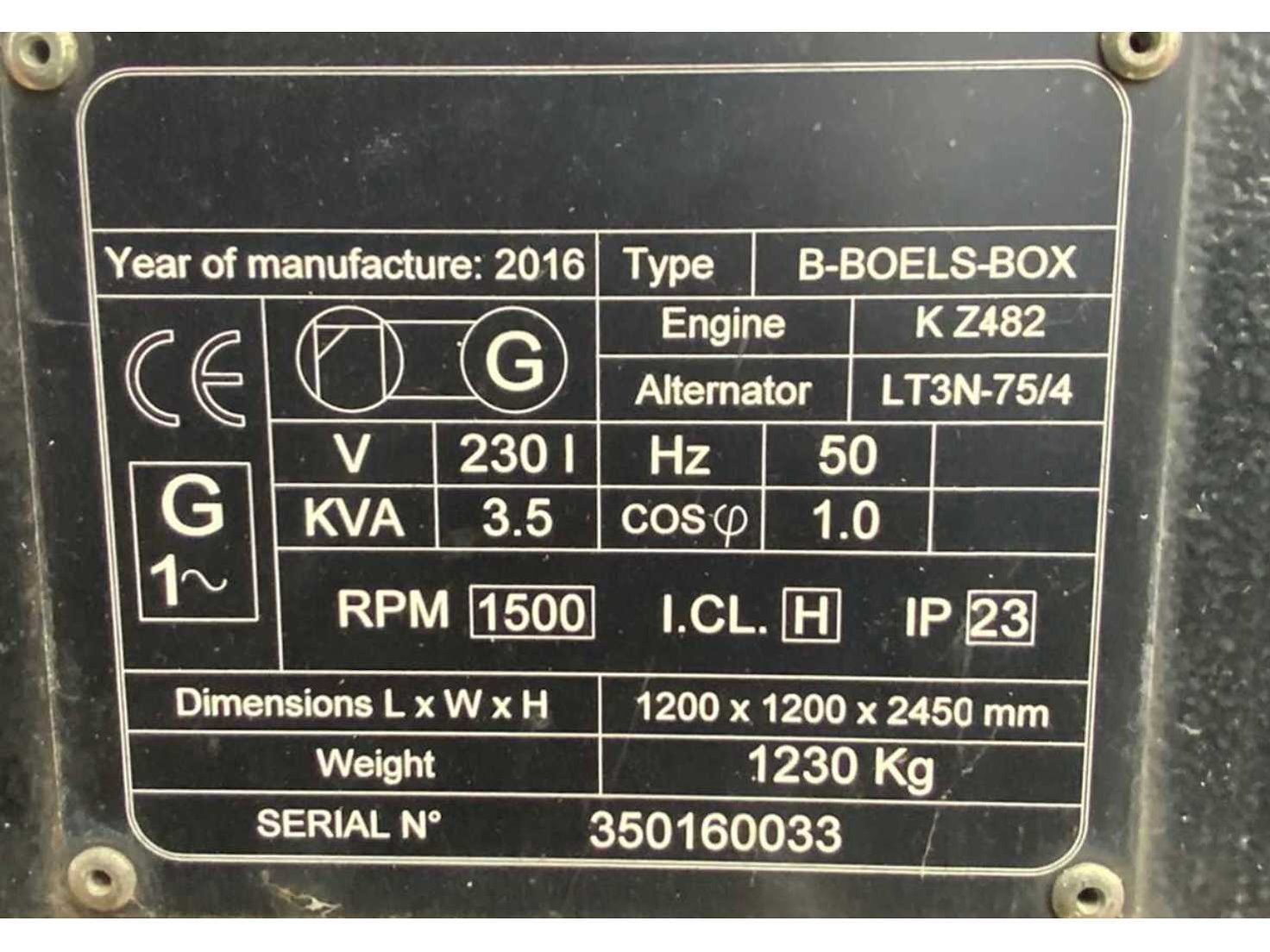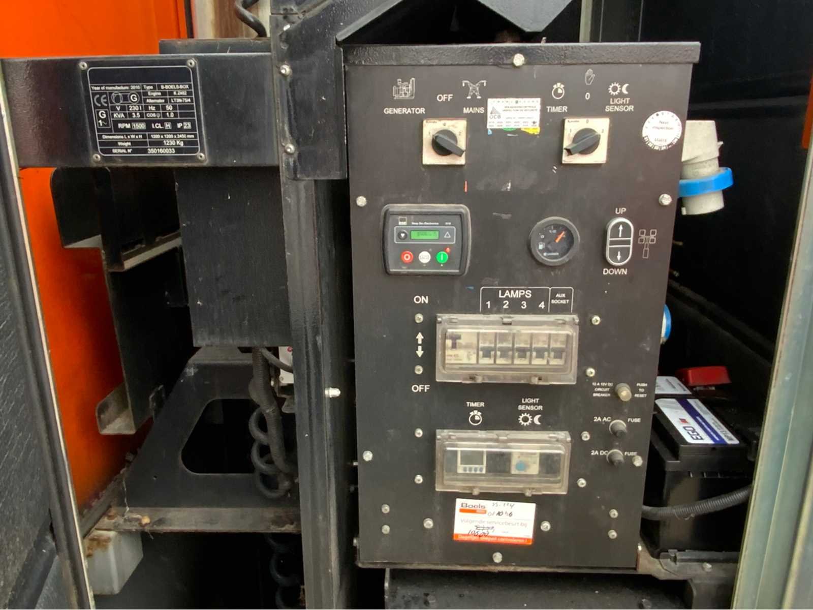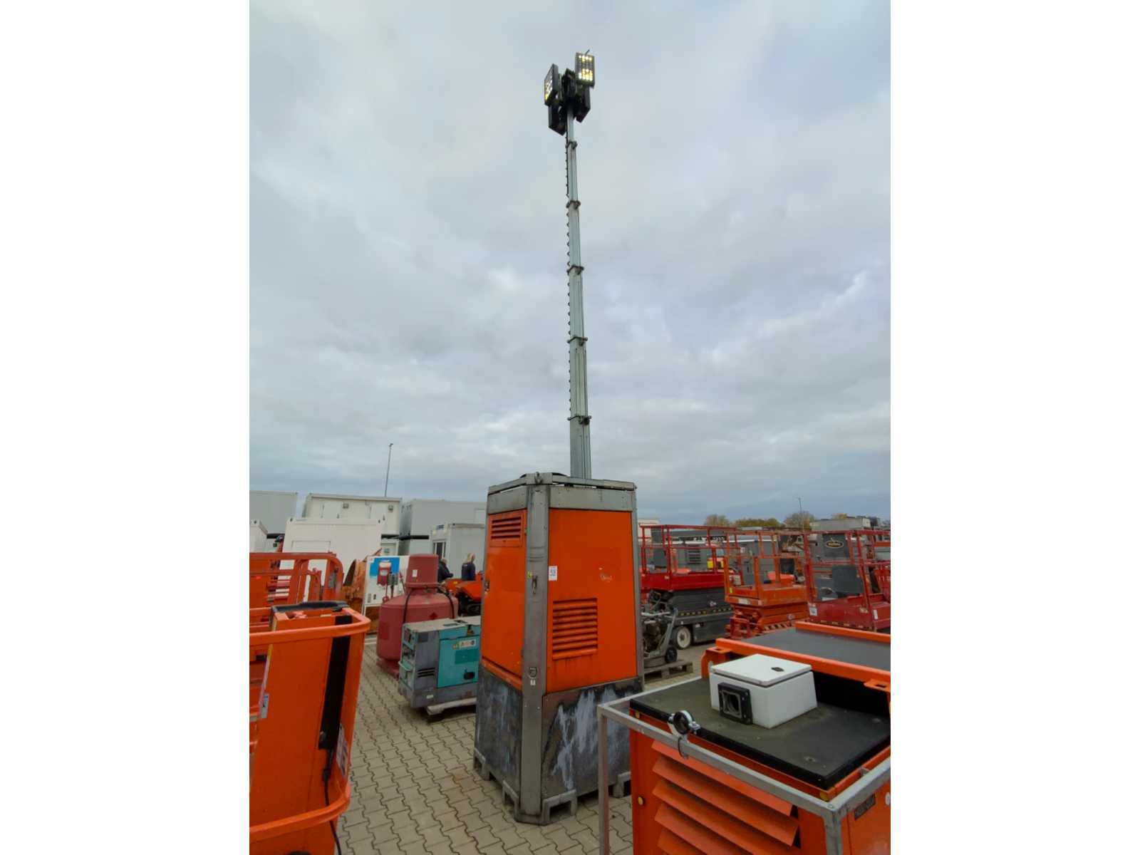 Kubota 2 cilinder diesel motor; alternator Linz alumen SB; 4x 300 Watt LED lampen; urenstand 9358 uur; verlichte oppervlakte circa 4000 m2; verbruik 0,5 liter / uur bij 100 belasting; hydraulische mast; max. masthoogte 8,3 meter; lichtsensor; aansluitbaar op 230 Volt netstroom; tankinhoud voor 160 liter brandstof; heftruck vorksleuven; hijsogen; aluminium; diverse LED elementen defect; motor loopt; Merk: Tower Light Type: B-Boels-Box Bouwjaar: 2016 Serienummer: 350160033 Totale afmeting L: 1200mm Totale afmeting Breedte: 1200mm Totale afmeting Hoogte: 2600mm Eigen gewicht: 1230kg