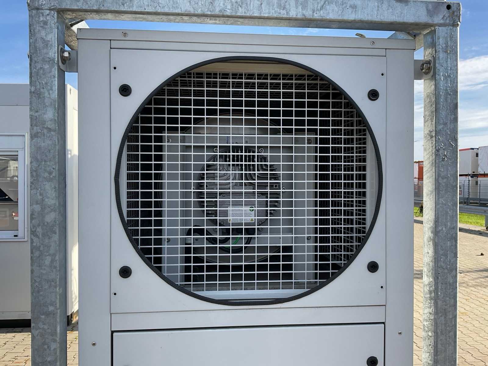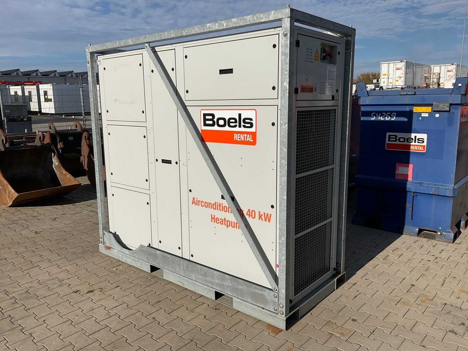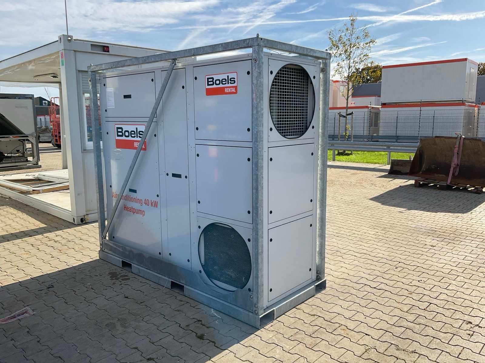Plug and play, in gegalvaniseerd frame, heftruck sleuven, hijsogen, slangaansluiting 600 mm, working condition not verified; Koelcapaciteit (W): 40000 Koelcompressor: true Verwarmingscapaciteit: 40 Type koudemiddel: R410 Aansluiting: 400V Eigen gewicht: 910kg Totale afmeting L: 2400mm Totale afmeting Breedte: 970mm Totale afmeting Hoogte: 2150mm