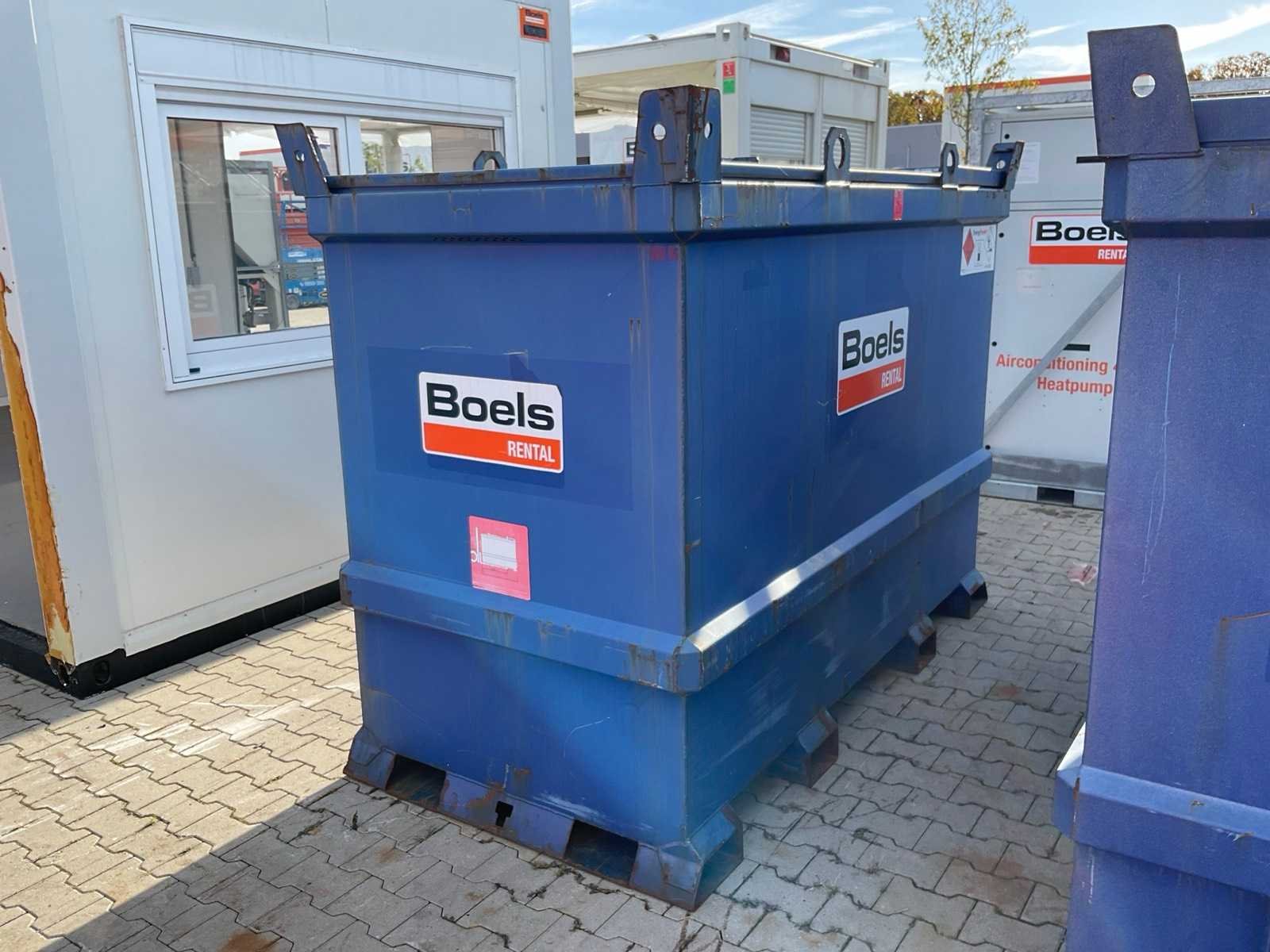 Capaciteit 3000 liter; hijsogen; heftruck vorksleuven; hijsogen: klep zonder veer; Merk: Tolsma Gewicht: 1000kg Type: 3m3 Bouwjaar: 2015 Serienummer: 15IS54269 Staal: true Totale afmeting L: 2500mm Totale afmeting Breedte: 1250mm Totale afmeting Hoogte: 1850mm