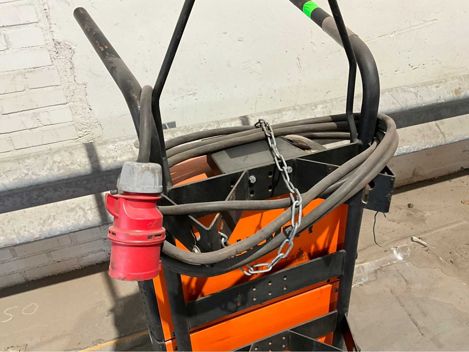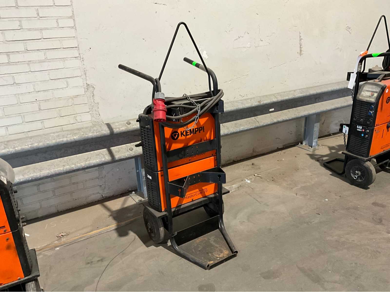 DC Tig en MMA lasstroom; zonder toebehoren; koelunit; laswagen; working condition Merk: Kemppi Type: MasterTig MLS 4000 / MasterCool 10 Tig type: true Ampère belasting: 400A Aansluiting: 400V Afmeting l: 650mm Afmeting b: 600mm Afmeting h: 1350mm