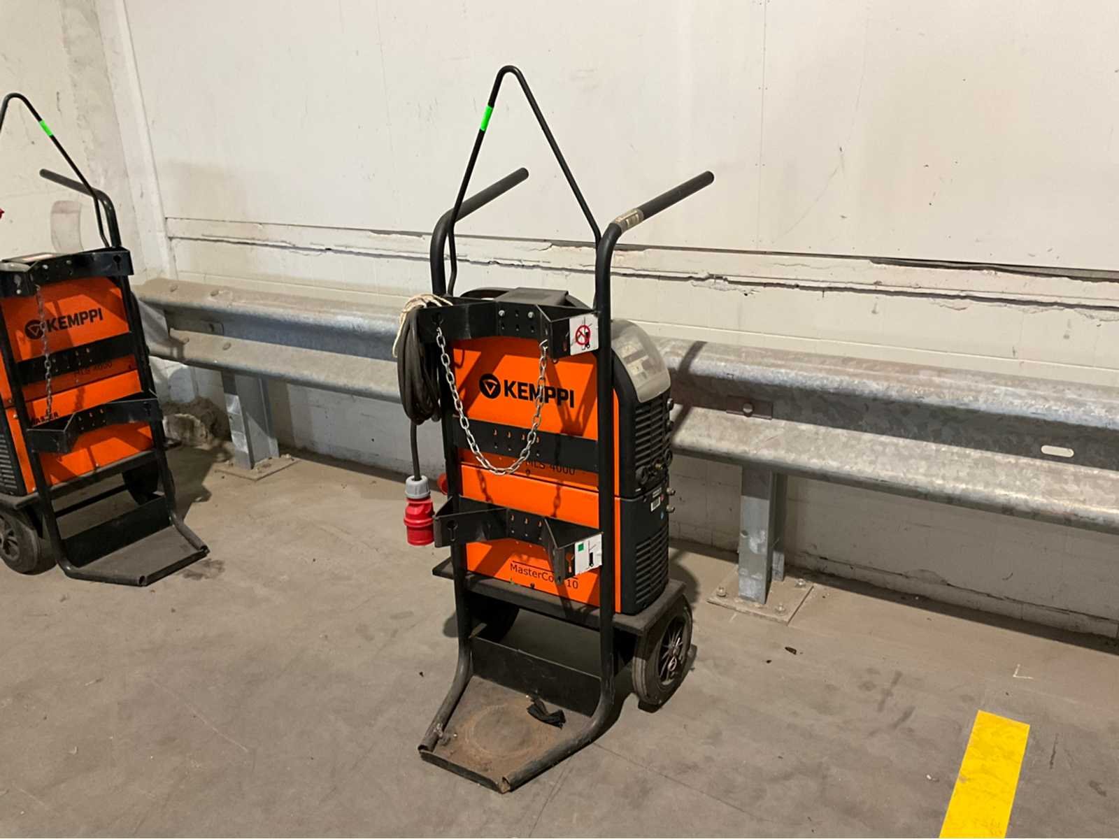 DC Tig en MMA lasstroom; zonder toebehoren; koelunit; laswagen; working condition Merk: Kemppi Type: MasterTig MLS 4000 / MasterCool 10 Tig type: true Ampère belasting: 400A Aansluiting: 400V Afmeting l: 650mm Afmeting b: 600mm Afmeting h: 1350mm