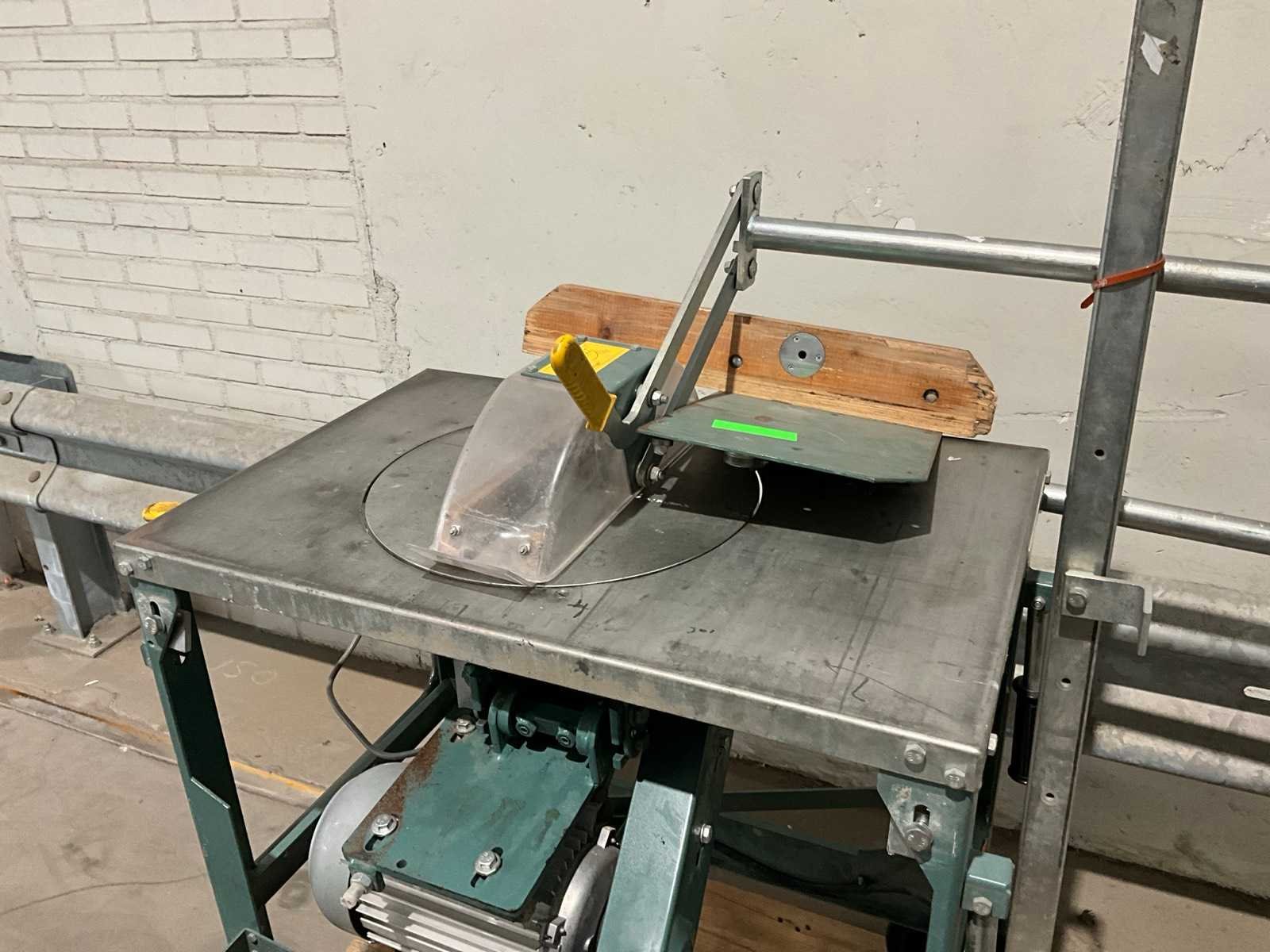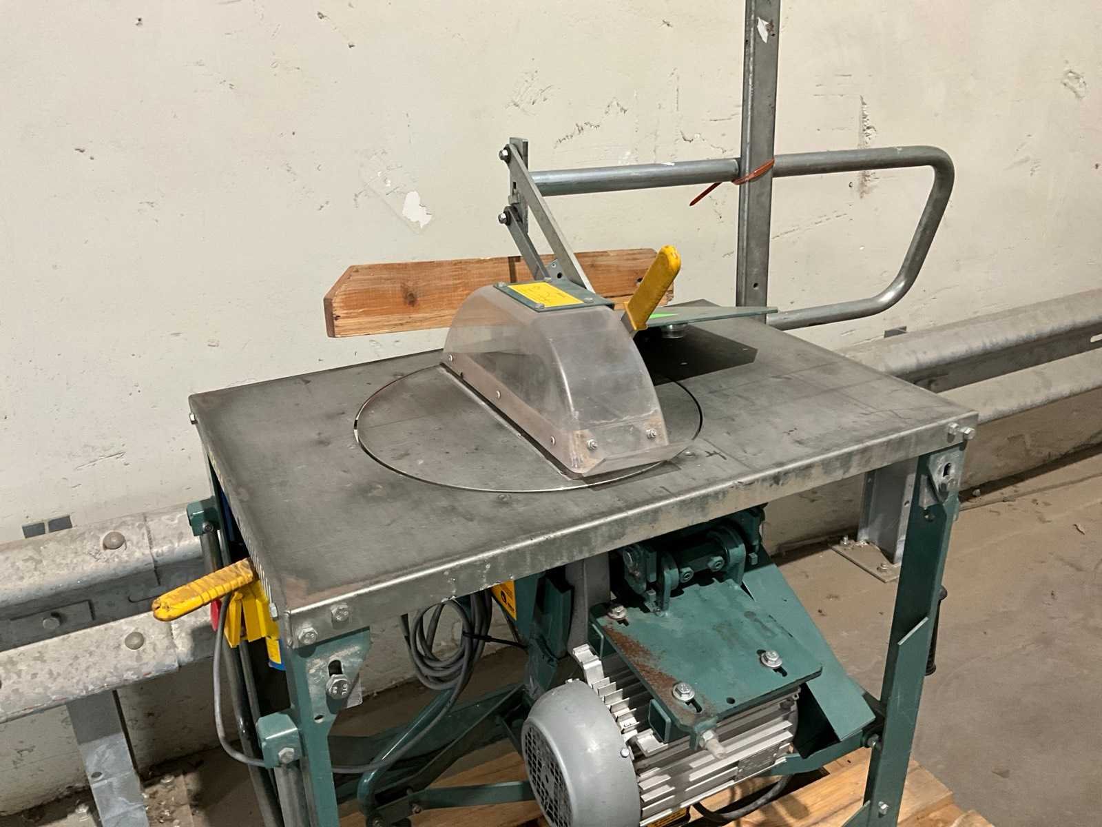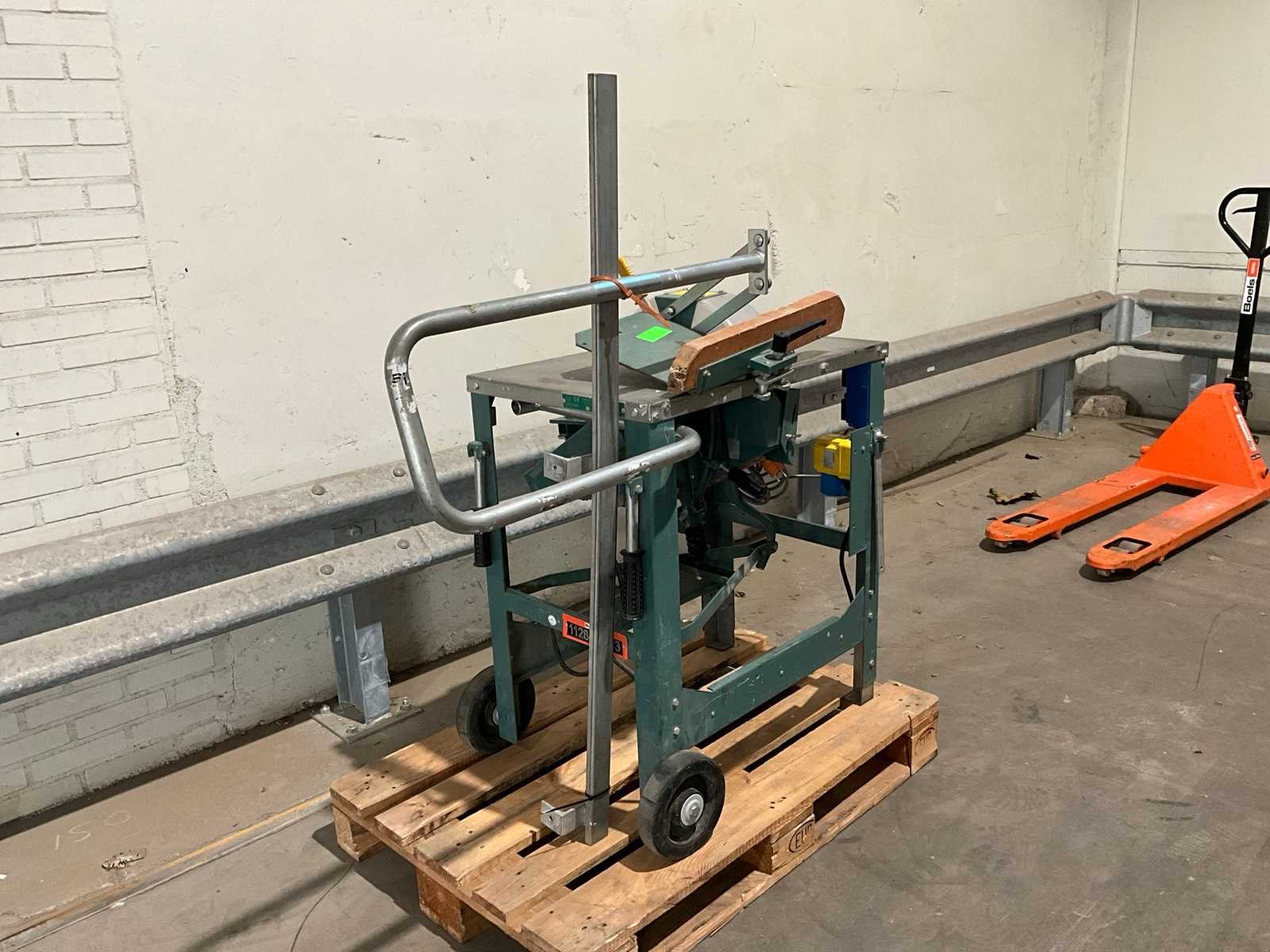 Verrijdbaar; working condition; zonder pallet; Merk: Gjerde Type: 1203 Bouwjaar: 2015 Zaagblad Ø: 300mm Verstek: true Tafel afmeting l: 800mm Tafel afmeting b: 550mm Onderliggende afkortzaag: true Motorvermogen (kW): 3kW Aansluiting: 230V Machinegewicht: 140kg Totale afmeting L: 1500mm Totale afmeting Breedte: 750mm Totale afmeting Hoogte: 1500mm