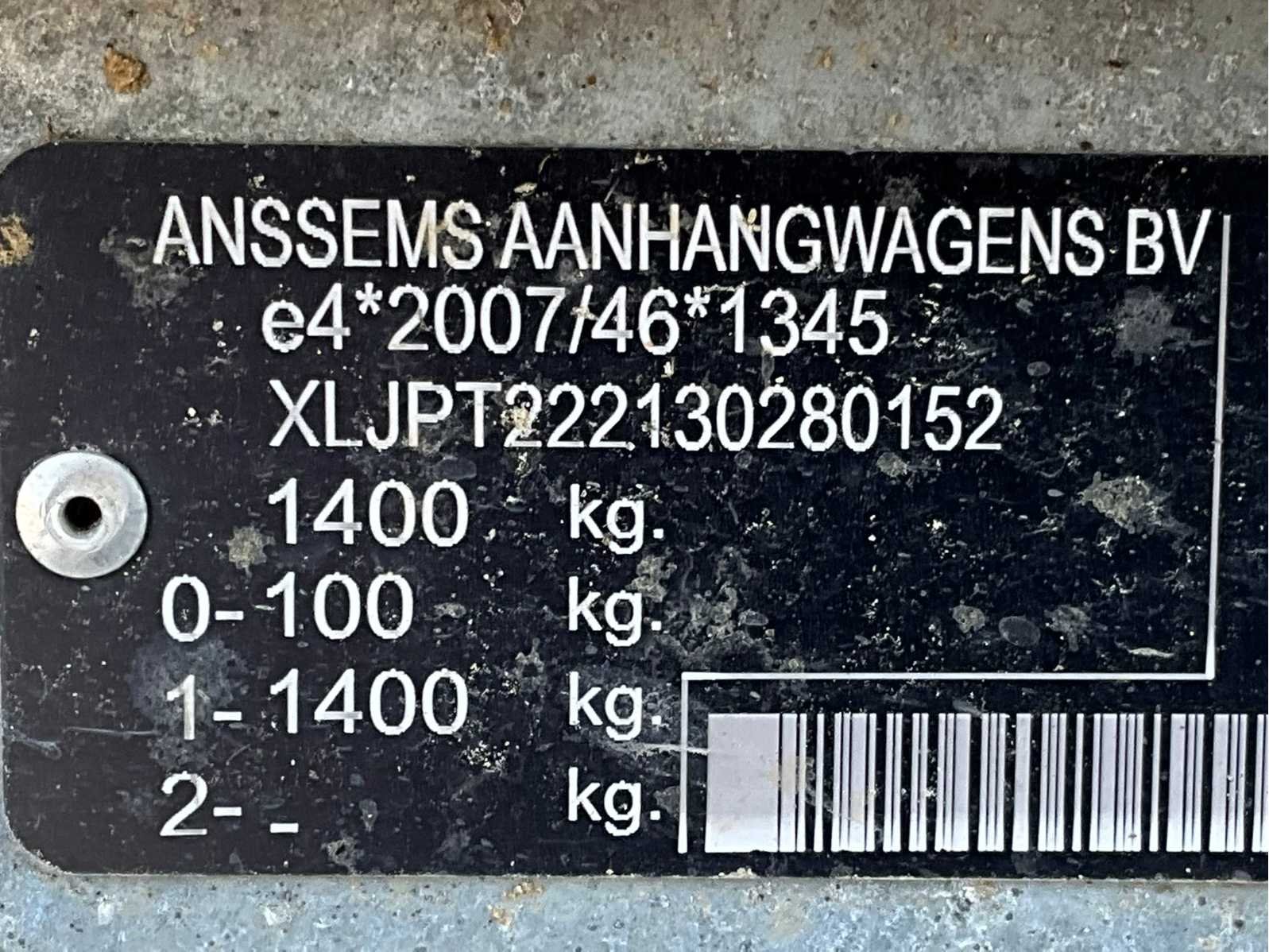 Gegalvaniseerd staal onderstel; 2x deur; geremd; snelverkeer; kogelkoppeling en transportverlichting; afzonderlijke opbergruimte; ramen voorzien van houten luik; neuswiel; Let op! corpusschade linkerzijde; (de koper dient bij transport over de weg zelf te voorzien in een geldig kenteken; een 13 polige aansluitstekker (verlengsnoer kan ter plaatse tegen betaling aangekocht worden); eventueel extra lichtbalk; Nederlandse kentekenpapieren; zonder gelijkvormigheidsattest; Merk: Anssems Type: D14 Bouwjaar: 2022 Chassisnummer VIN: XLJPT222130280152 Kenteken: 43-WDK-9 Afmeting l: 4000mm Afmeting b: 1960mm Afmeting h: 2200mm Aantal ramen: 2 Eigen gewicht: 920kg Totale afmeting L: 5750mm Totale afmeting Breedte: 2050mm Totale afmeting Hoogte: 2700mm