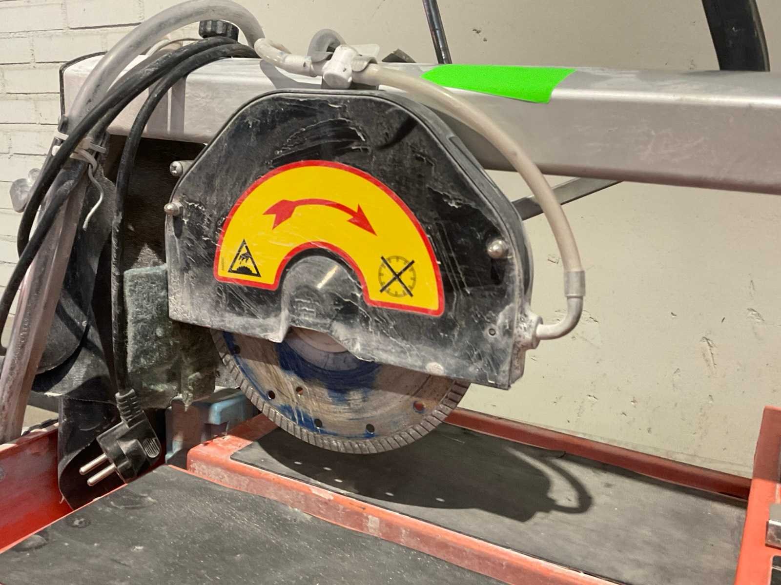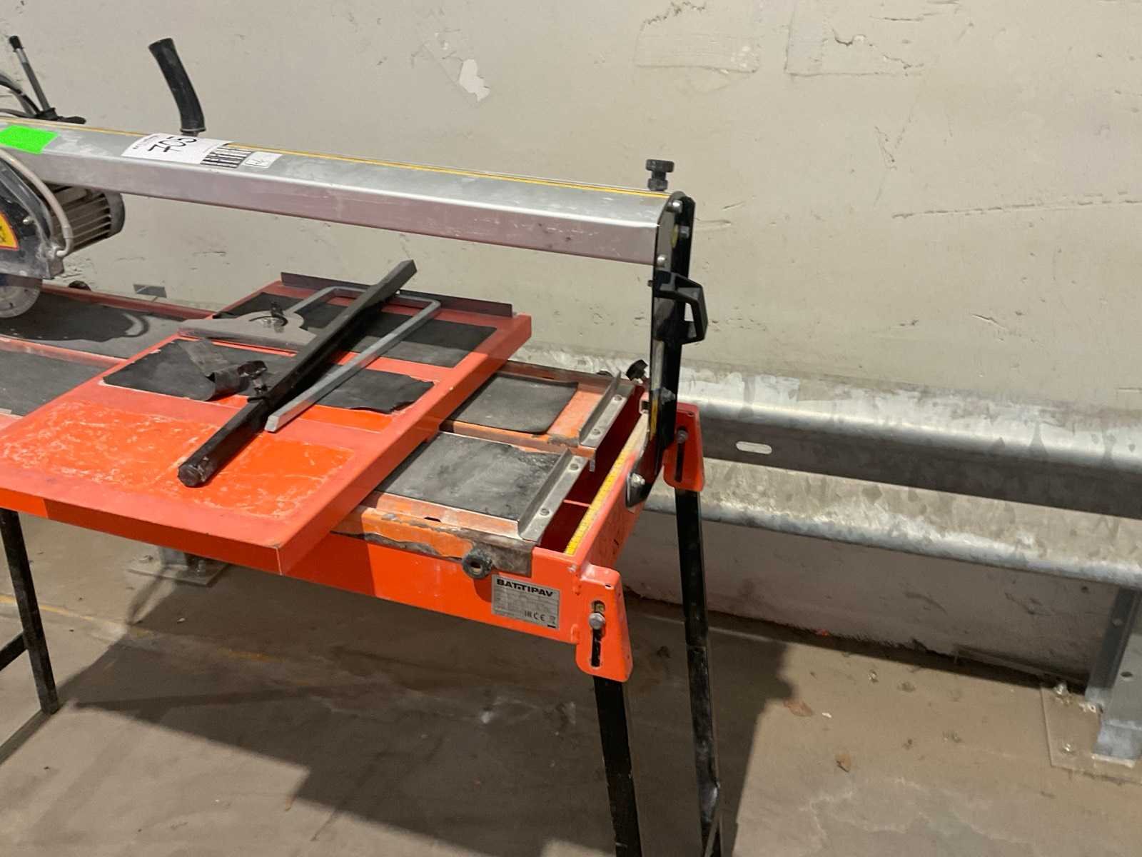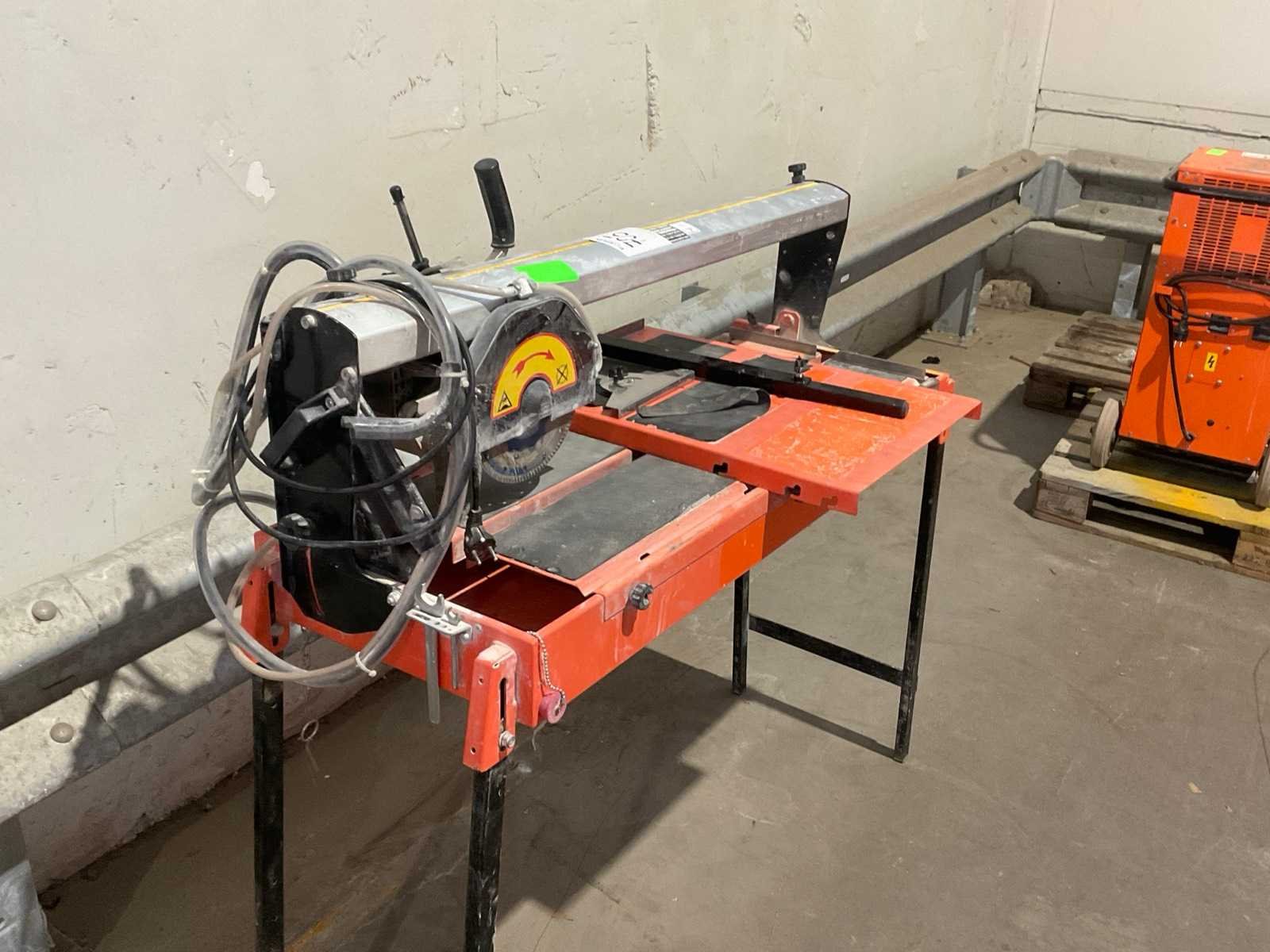 Inklapbaar onderstel; watergekoeld; schuin instelbaar; toepassing; wandtegels / vloertegels; zaagblad; uitlading 900 mm; working condition; Merk: Battipav Type: VIP290 Bouwjaar: 2020 Aansluiting: 230V Totale afmeting L: 1450mm Totale afmeting Breedte: 450mm Totale afmeting Hoogte: 1250mm Vermogen: 1000