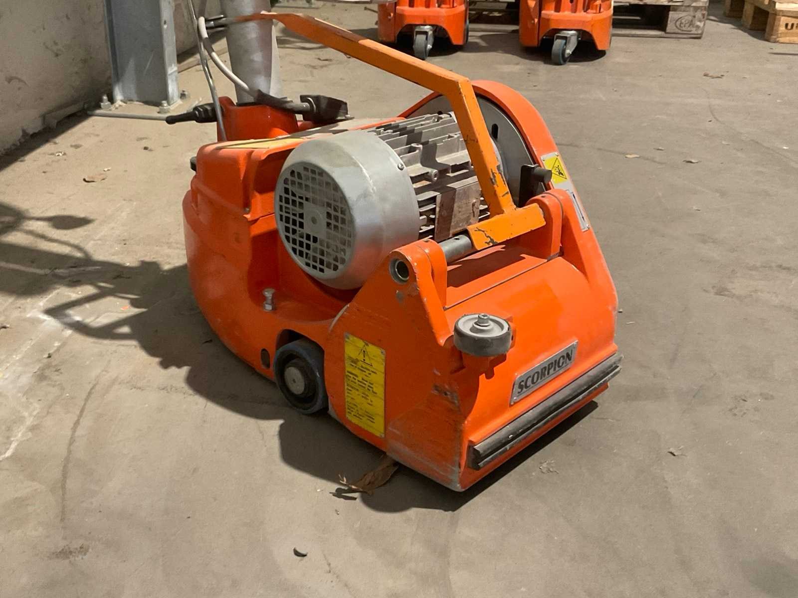 Werkbreedte 203 mm; zonder stofzak; 1500 Watt; N=3000 / min; working condition Merk: KT Kunzle & Tasin Type: Scorpion Aansluiting: 230V Eigen gewicht: 56kg Totale afmeting L: 350mm Totale afmeting Breedte: 800mm Totale afmeting Hoogte: 1050mm