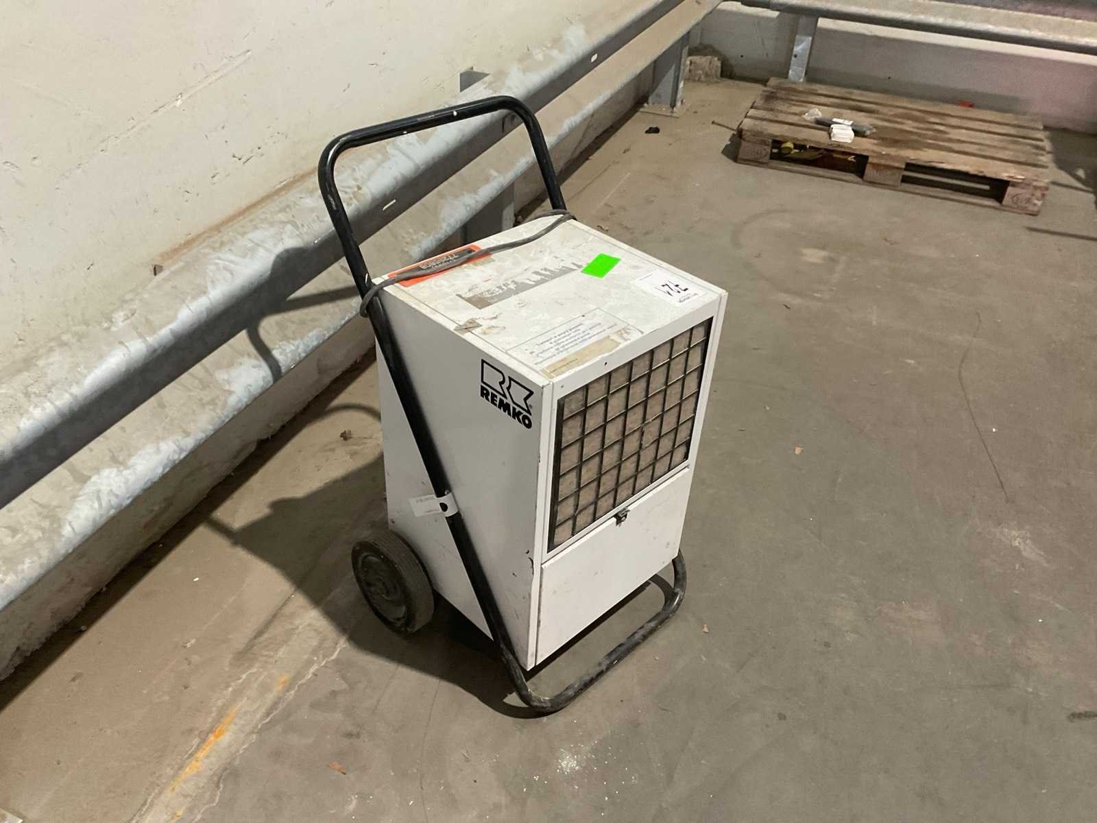 Vermogen: 0,82 kW; luchtverplaatsing: 600 m³/hr; aansluiting: 230 V; totale afmeting L: 500 mm; totale afmeting B: 550 mm; totale afmeting H: 900 mm; omschrijving: verrijdbaar; duwbeugel; afgelezen urenstand 7752 uur; working condition; Merk: Remko Type: ETF 550