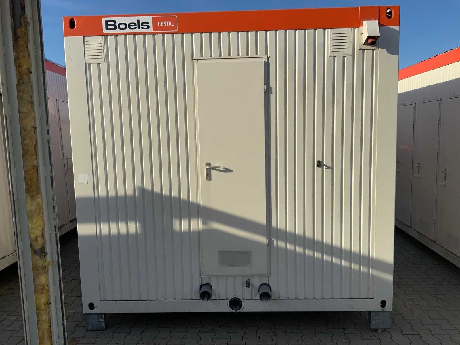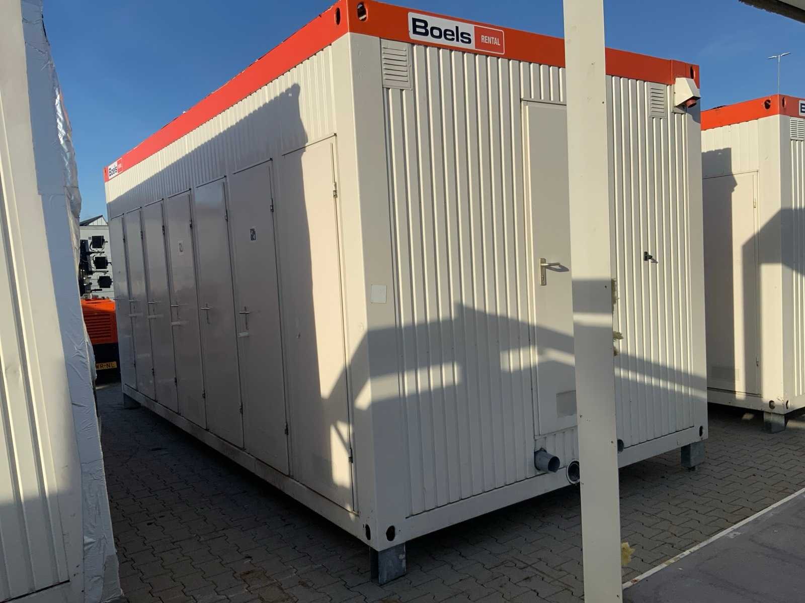 Staal frame; 1x wasbak aan de kopse zijde; 400 Volt stroom aansluiting; verlichting; wateraansluiting; afvoer; verwarming; twistlocks; de koper dient zelf te zorgen voor transport en vrachtauto met laadkraan; Merk: Algeco Type: VXS36 Aantal toiletten: 14 Totale afmeting L: 6050mm Totale afmeting Breedte: 3000mm Totale afmeting Hoogte: 2800mm