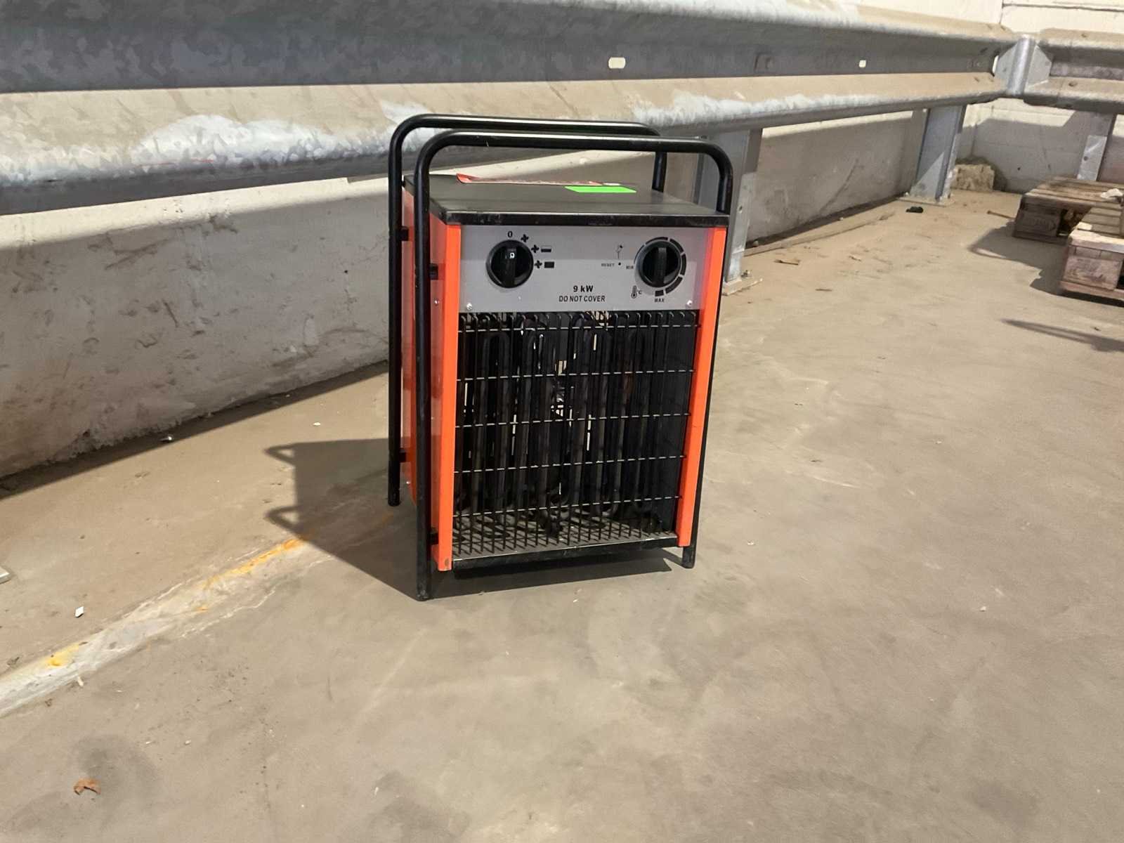 Standenschakelaar; volumestroom 708 m3 / uur; 13 Ampère; draagbeugel; working condition Vermogen: 9kW Ventilator: true Thermostaat: true Eigen gewicht: 10kg Totale afmeting L: 320mm Totale afmeting Breedte: 450mm Totale afmeting Hoogte: 480mm Aansluiting: 400V