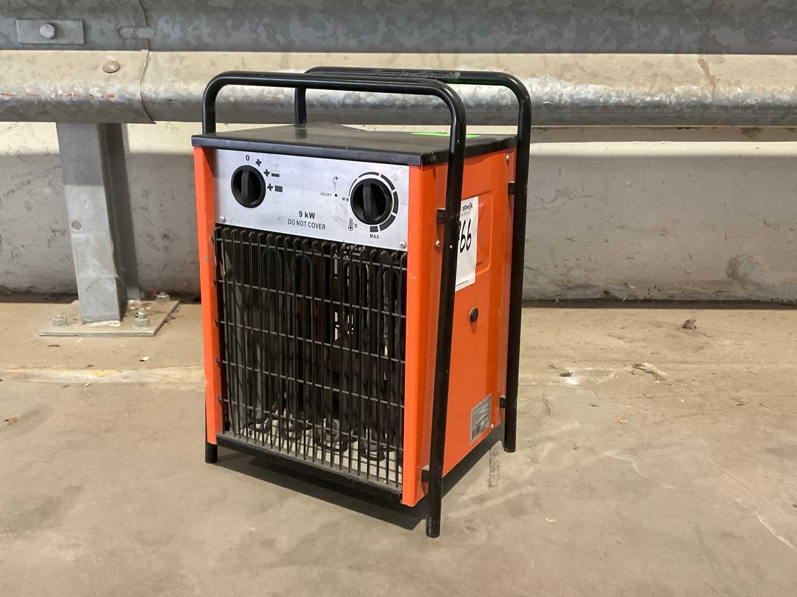 Standenschakelaar; volumestroom 708 m3 / uur; 13 Ampère; draagbeugel; working condition Vermogen: 9kW Ventilator: true Thermostaat: true Eigen gewicht: 10kg Totale afmeting L: 320mm Totale afmeting Breedte: 450mm Totale afmeting Hoogte: 480mm Aansluiting: 400V