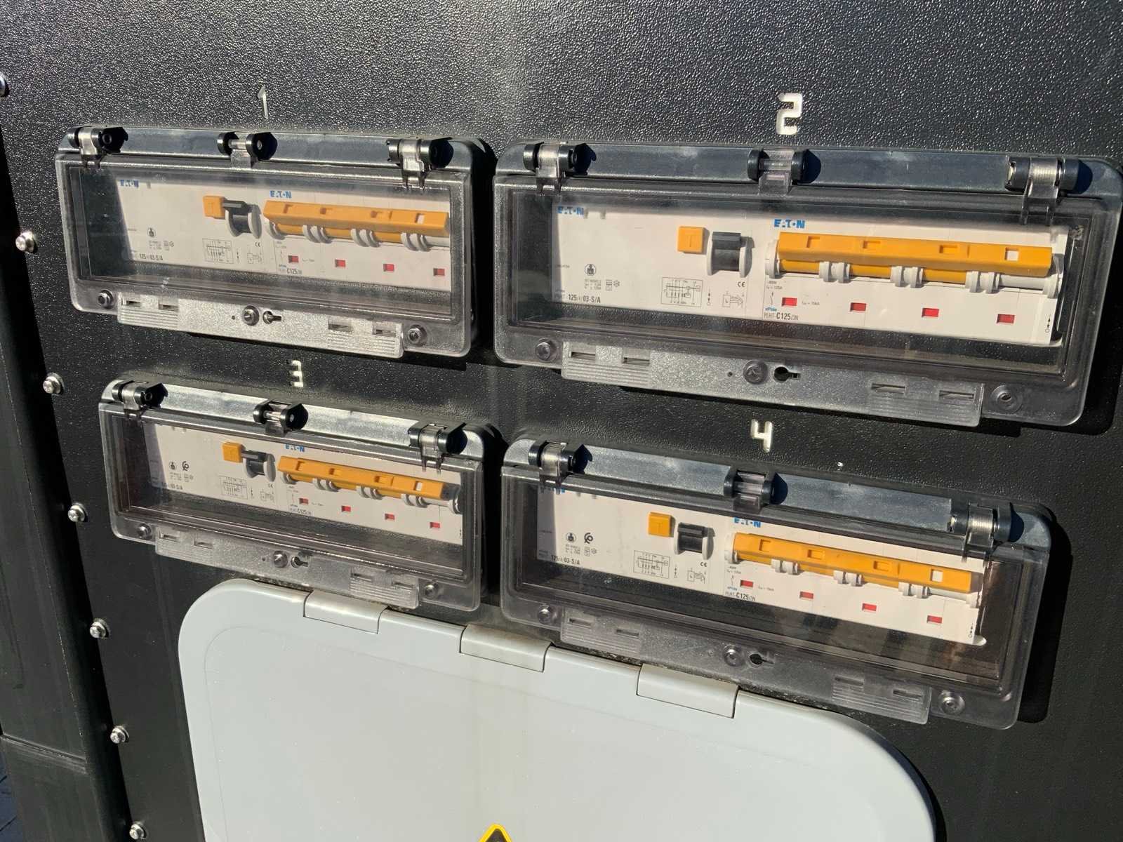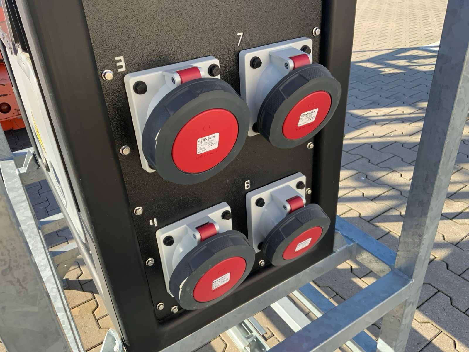 4x uitgang 400 Volt - 125 Ampère; 2x uitgang 400 Volt - 63 Ampère; 2x uitgang 400 Volt - 32 Ampère; powerlock aansluitingen 500 Ampère; voorzien van gegalvaniseerd stalen frame; hijsogen; working condition Merk: Vello Type: V91.80.0184 Bouwjaar: 2019 Aansluiting: 630A Aantal uitgangen 380 v / 32 a: 2 Aantal uitgangen 380 v / 63 a: 2 Eigen gewicht: 150kg Totale afmeting L: 1100mm Totale afmeting Breedte: 600mm Totale afmeting Hoogte: 1750mm