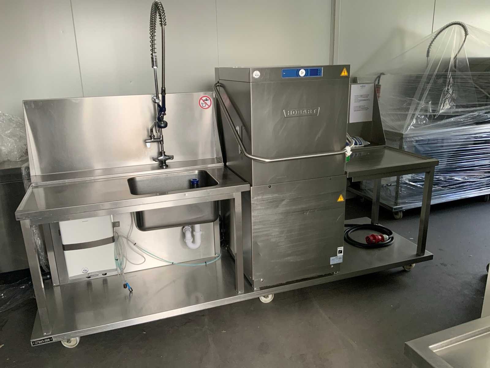 Verrijdbaar; roestvast staal; aanbouw doorschuif verlektafel; diverse zeepproducten; boiler AEG; 16 Ampère; working condition; Merk: Hobart Type: AMXS-10A Materiaal: Roestvast staal Serienummer: 866063589 Kapmodel: true Doorschuifmodel: true Vermogen: 7.1kW Aansluiting: 400V Korf afmeting l: 50cm Korf afmeting b: 50cm Totale afmeting L: 2400mm Totale afmeting Breedte: 800mm Totale afmeting Hoogte: 1800mm Bouwjaar: 2019