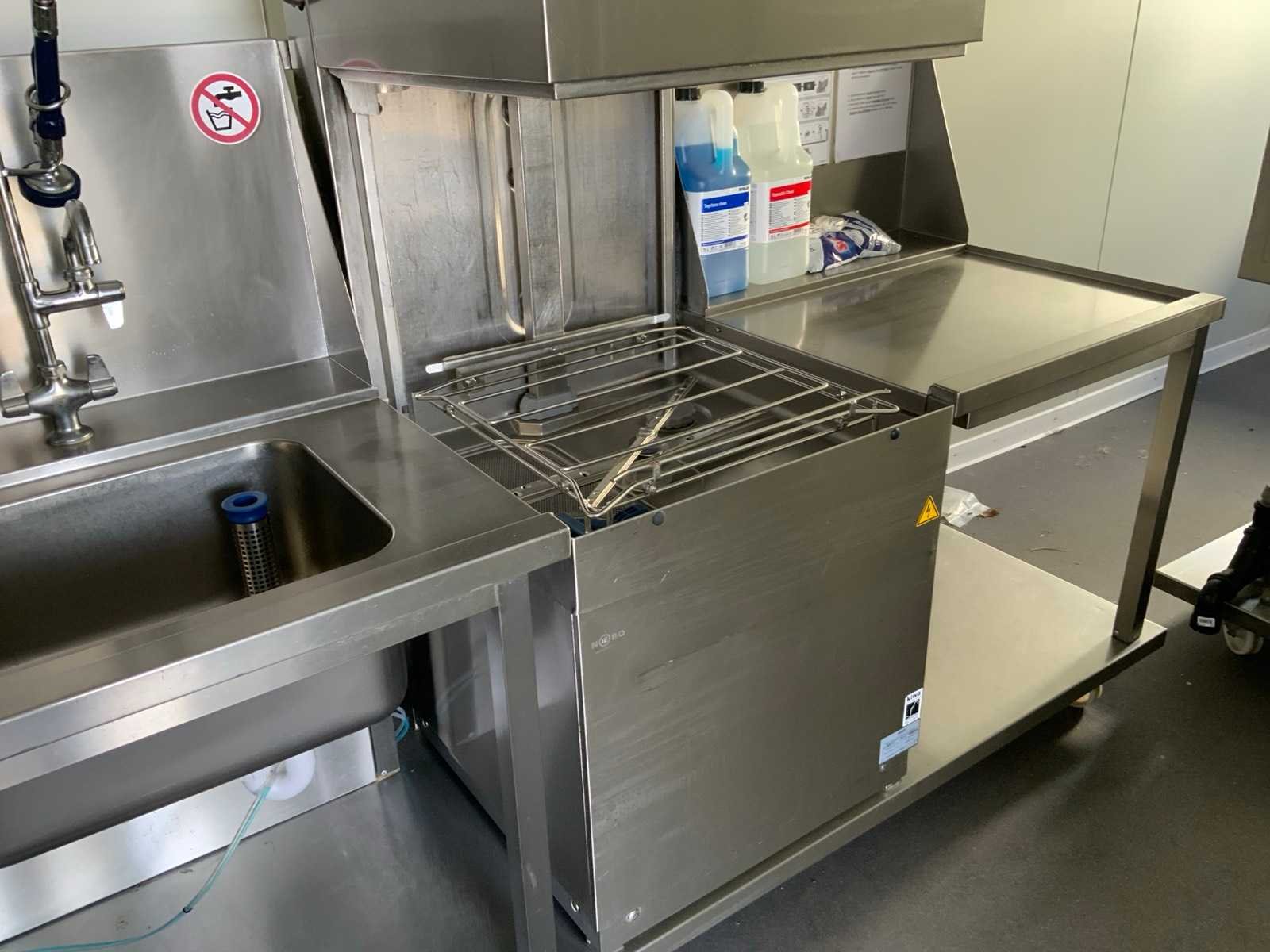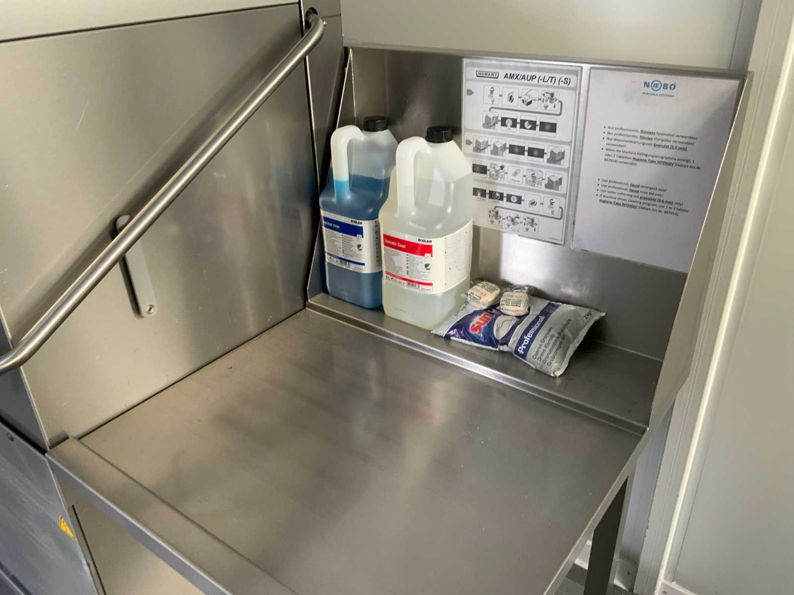 Verrijdbaar; roestvast staal; aanbouw doorschuif verlektafel; diverse zeepproducten; boiler AEG; 16 Ampère; working condition; Merk: Hobart Type: AMXS-10A Materiaal: Roestvast staal Serienummer: 866064107 Kapmodel: true Doorschuifmodel: true Vermogen: 7.1kW Aansluiting: 400V Korf afmeting l: 50cm Korf afmeting b: 50cm Totale afmeting L: 2400mm Totale afmeting Breedte: 800mm Totale afmeting Hoogte: 1800mm Bouwjaar: 2019