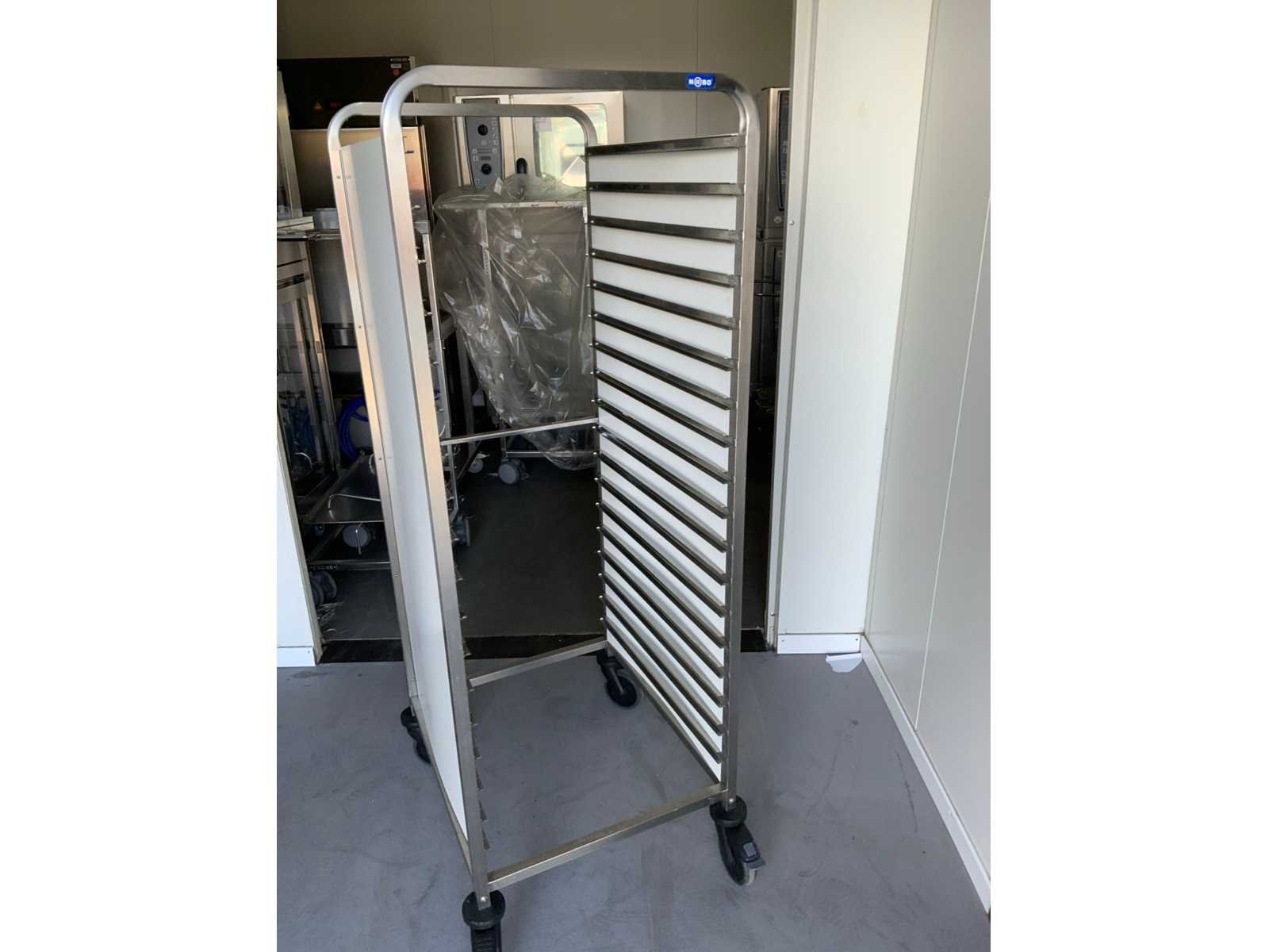 18 niveaus GN 2/1; voorzien van rubber stootranden; Totale afmeting L: 680mm Totale afmeting Breedte: 600mm Totale afmeting Hoogte: 1650mm Materiaal: Roestvast staal