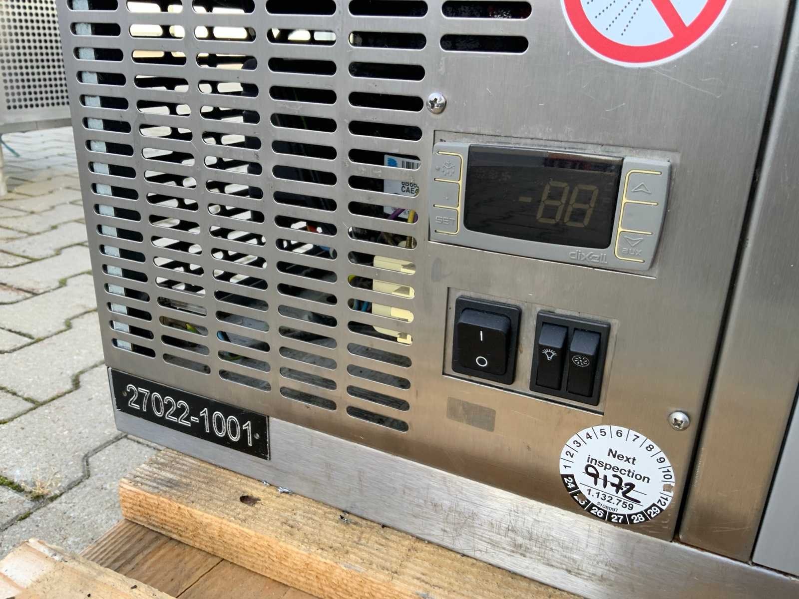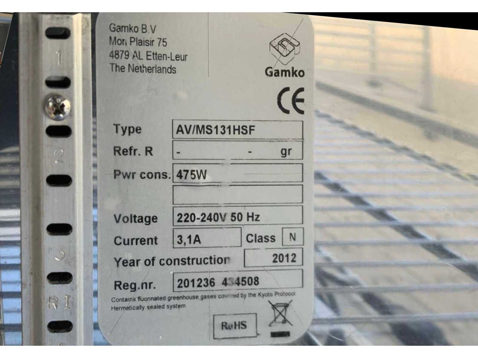 Roestvast staal; beglaasde panelen; schuifdeur; 3x uitgifteluik; 2x legrooster; ingebouwde koelmotor; thermostaat; 230 Volt; 16 Ampère; working condition not verified; Merk: Gamko Type: AV/MS131HSF Bouwjaar: 2012 Totale afmeting L: 1000mm Totale afmeting Breedte: 900mm Totale afmeting Hoogte: 1750mm