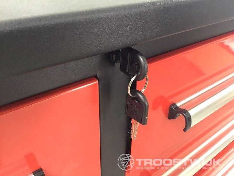 V.v. 2x sleutel; 2x ophangbeugel; 20 lades; 3 delig schuifsysteem; antislipmat; wielen; handvat aan zijkant; aantal laden: 20; staal: ja; stalen blad : ja; totale afmeting LxBxH: 2225x650x1140; eigen gewicht: 275 kg; © ongebruikt Merk: 2024 -Easy-Going Model: 7FT-20D-01C Breedte: 650mm Gewicht: 275kg Lengte: 2250mm Hoogte: 1140mm Materiaal: metaal GS Code: 940310