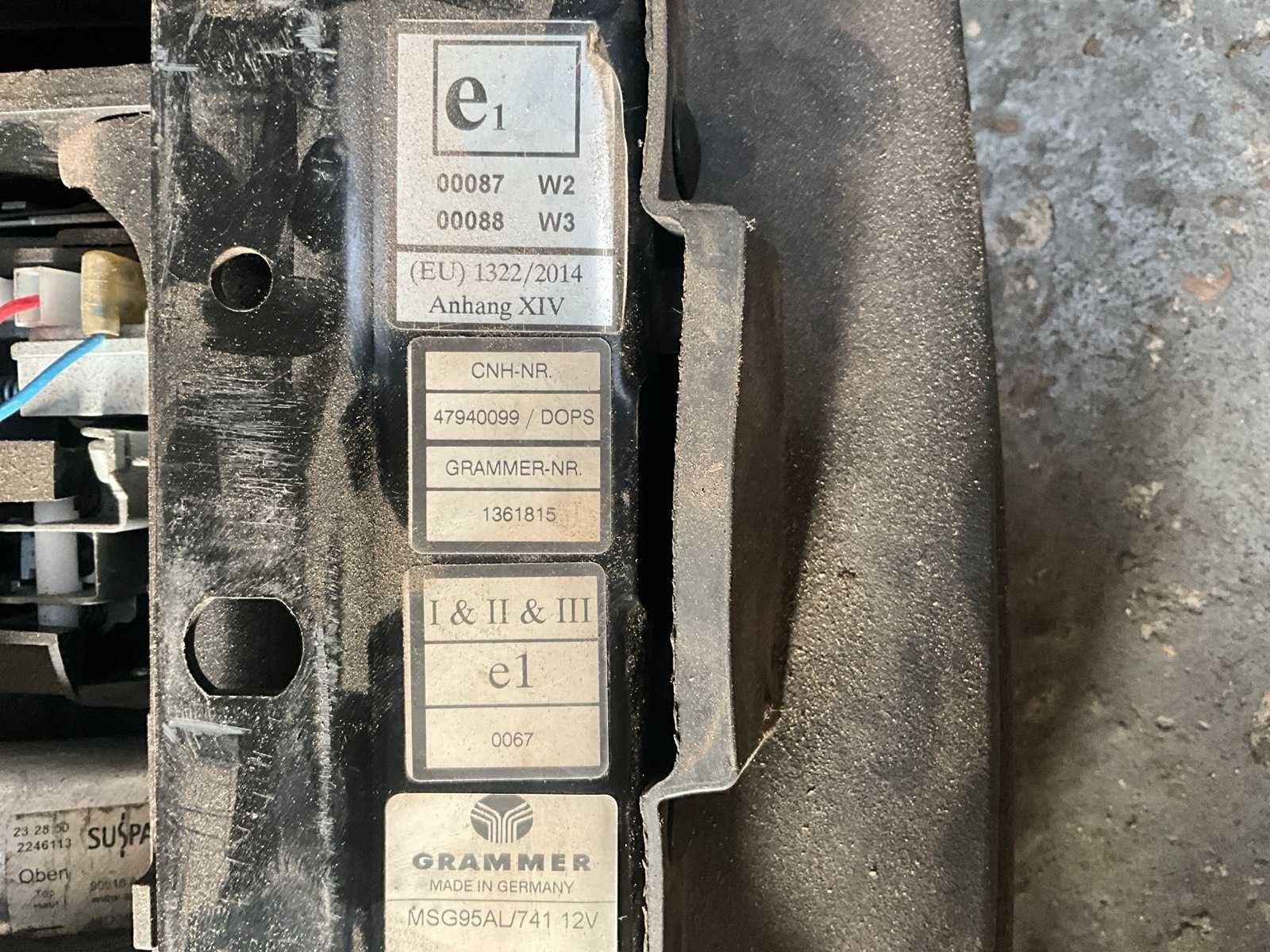 Luchtgeveerd Laagfrequentievering Compressor: 12V Veerweg: 10 cm APS (Automatisch Positionering Systeem) Gewichtsinstelling: 50 – 130 kg (automatisch) Hoogte-instelling: 8 cm (traploos) Horizontaalvering (blokkeerbaar) Instelbare schokdemper Langsverstelling: 21 cm Merk: Grammer Type: MSG95 Luchtgeveerde stoel: true