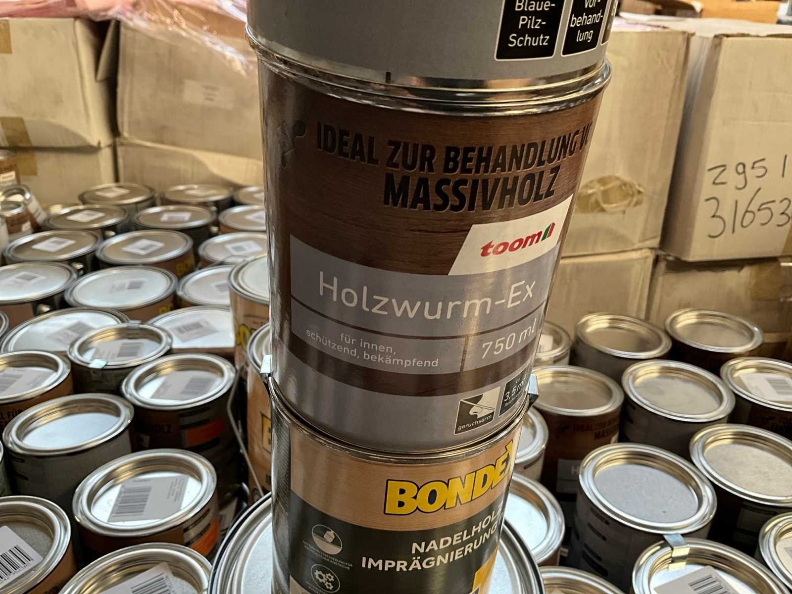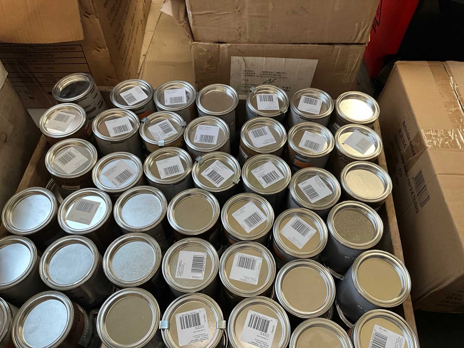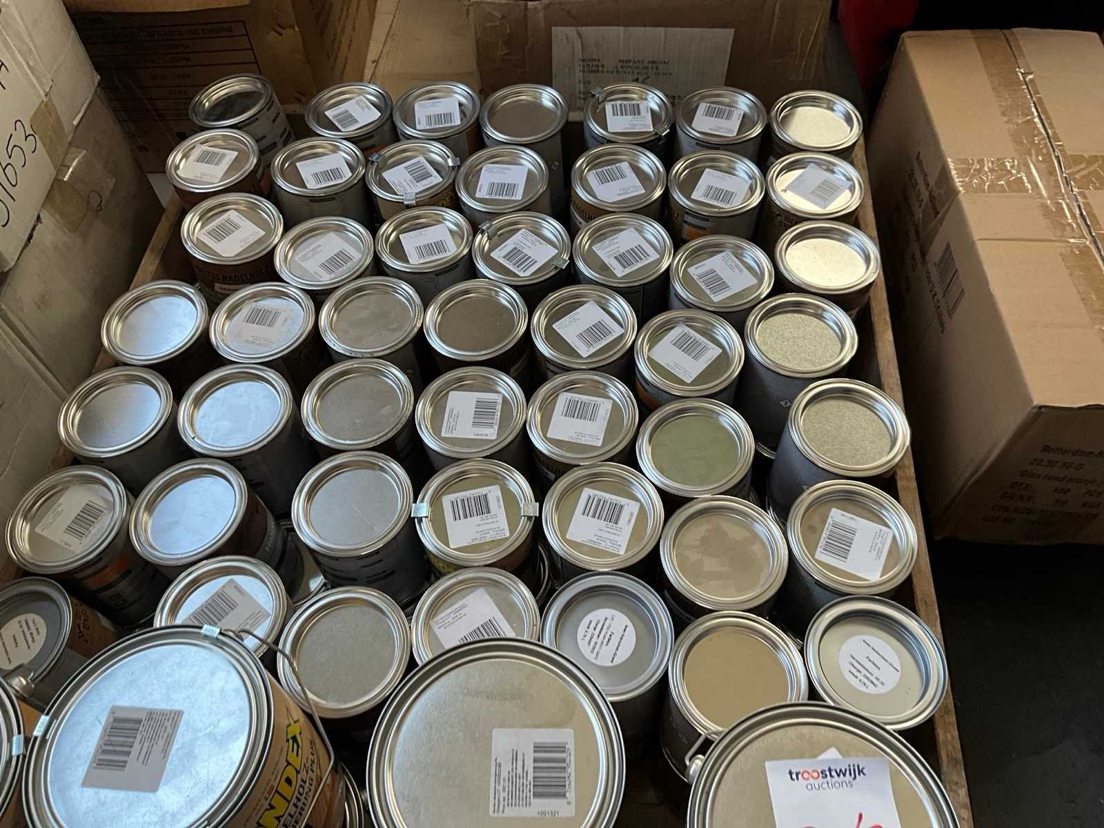 Pallet niet bij kavel inbegrepen; ongeopend met seal; nieuw; Diverse soorten, kleuren en maten verf;