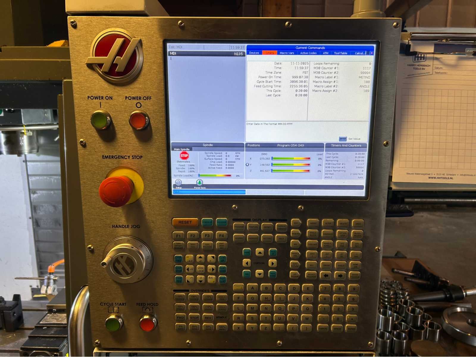 De machine is uitgerust met: - 24 posities ATC - Renishaw-sondesysteem - machine wordt voorbereid voor door middel van spilkoeling Vice, boorkop en gereedschap niet inbegrepen! Merk: Haas Type: VF-2 Bouwjaar: 2017 Serienummer: 1142867 Opname iso: SK-40 Verplaatsing x-as: 762mm Verplaatsing y-as: 508mm Verplaatsing z-as: 508mm Snelheid van n =: 1rpm Snelheid tot n =: 8100rpm Afgelezen urenstand: 2255 CNC-besturing, merk, type: Haas Spanentransporteur: true Koelmiddelpomp: true T-gleuf opspantafelafmeting B: 356mm T-gleuf opspantafelafmeting L: 914mm -assig: 3 Aansluiting: 400V