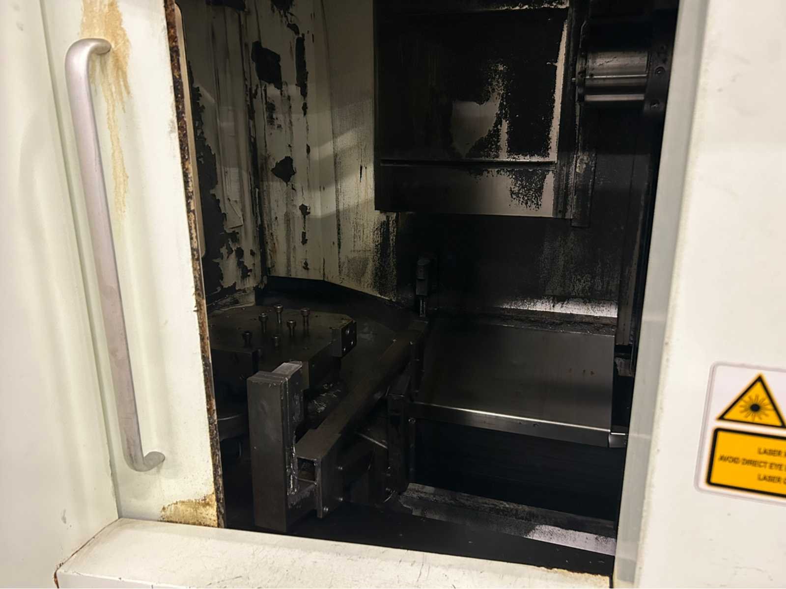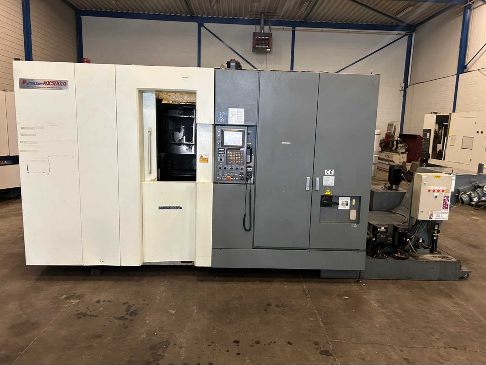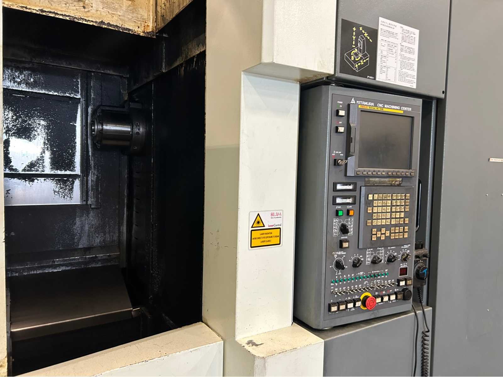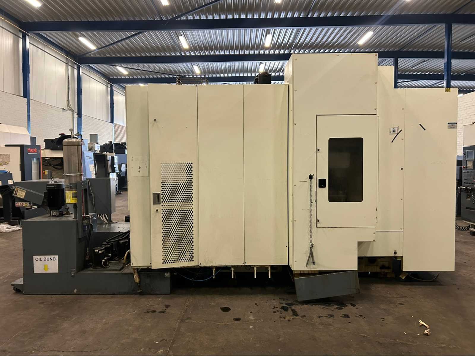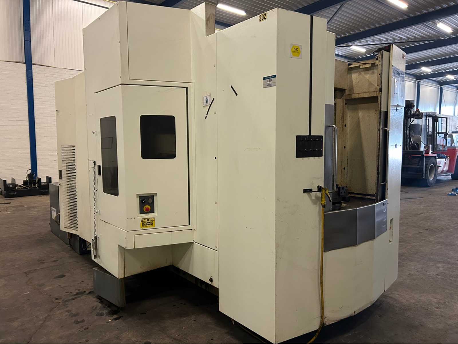 Merk: Kitamura Type: MyCenter HX 400ia Bouwjaar: 2005 Serienummer: 82008 Opname iso: BT-40 Verplaatsing x-as: 735mm Verplaatsing y-as: 610mm Verplaatsing z-as: 610mm Snelheid van n =: 1rpm Snelheid tot n =: 13000rpm CNC-besturing, merk, type: Fanuc Series 16i-MB Spanentransporteur: true Koelmiddelpomp: true T-gleuf opspantafelafmeting B: 400mm T-gleuf opspantafelafmeting L: 400mm -assig: 3 Motorvermogen (kW): 22kW Aansluiting: 400V Totale afmeting Hoogte: 2840mm Totale afmeting Breedte: 2510mm Totale afmeting L: 4300mm Machinegewicht: 13000kg