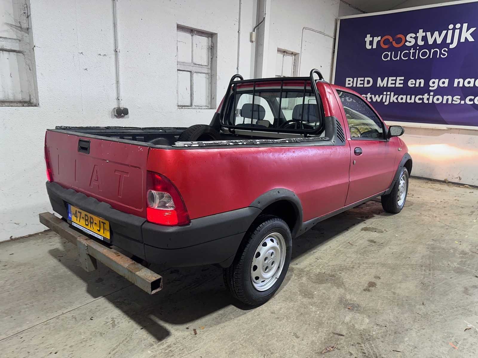 Kenteken: 47-BR-JT Merk: Fiat Type: 1.2 60 Model: Strada Pick-up Chassisnummer: ZFA17800002431791 Afgelezen kilometerstand: 38045km Cilinderinhoud: 1242cc Vermogen (kW): 44kW Brandstof: EURO Datum eerste toelating: 2004-11-11 Datum eerste toelating (NL): 2004-11-11 APK vervaldatum: 2026-09-09 NAP status: Logisch Aantal zitplaatsen: 2 Kleur: niet van toepassing Aantal sleutels: 1 Ledig gewicht: 1055kg Laadvermogen: 730kg Aantal cilinders: 4 Carrosserie: open wagen Emissieklasse: 3