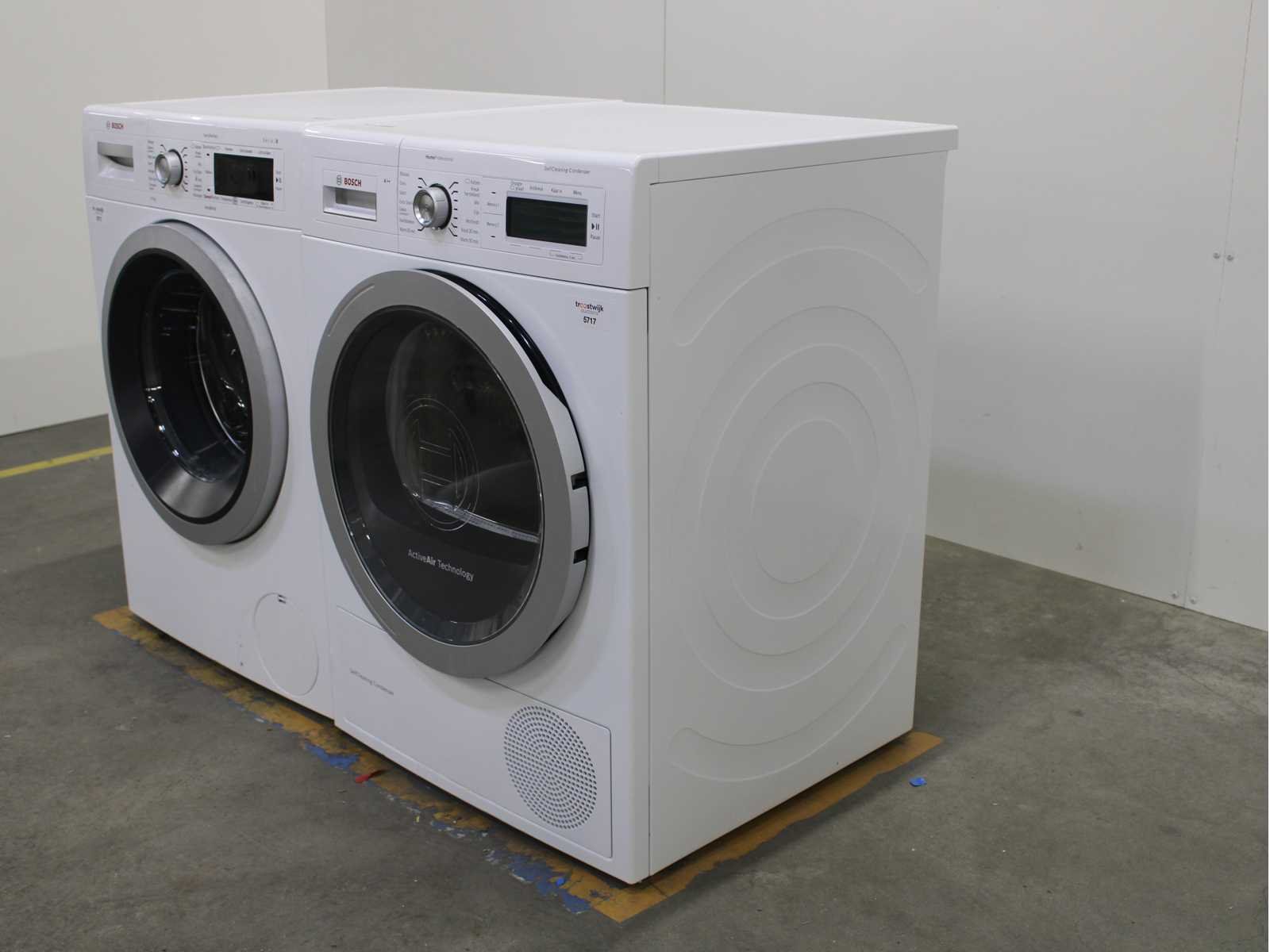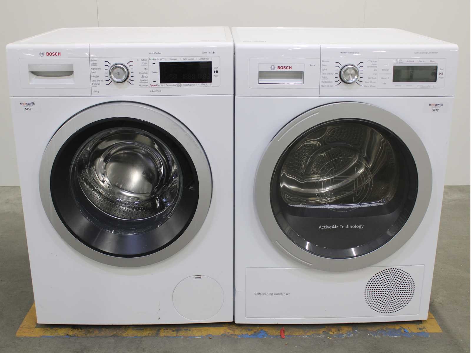 Deze wasmachine en wasdroger komen uit een partij jong gebruikt A-Merk witgoed. De machines zijn volledig getest, gereinigd en indien nodig gerepareerd. Houdt er rekening mee dat de machines lichte gebruikssporen kunnen hebben. Wasmachines en wasdrogers hebben vaak standaard afmetingen. Hoogte 85cm, Breedte 60cm en Diepte 60 tot 70cm, incl. uitstekende slangen e.d. aan de achterzijde. Als de machine vrij komt te staan is de afmeting minder relevant. Wil je de machine in een nis plaatsen of inbouwen? Controleer dan de exacte afmetingen op basis van het aangeboden merk en model/type. Within 7 days Merk: Bosch Serienummer: WAW28542NL/01 en WTY87700NL/18