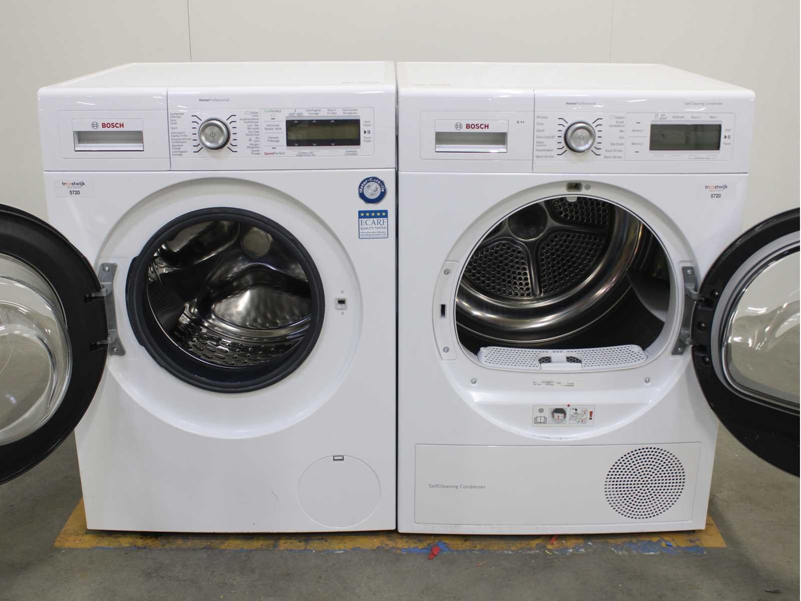 Deze wasmachine en wasdroger komen uit een partij jong gebruikt A-Merk witgoed. De machines zijn volledig getest, gereinigd en indien nodig gerepareerd. Houdt er rekening mee dat de machines lichte gebruikssporen kunnen hebben. Wasmachines en wasdrogers hebben vaak standaard afmetingen. Hoogte 85cm, Breedte 60cm en Diepte 60 tot 70cm, incl. uitstekende slangen e.d. aan de achterzijde. Als de machine vrij komt te staan is de afmeting minder relevant. Wil je de machine in een nis plaatsen of inbouwen? Controleer dan de exacte afmetingen op basis van het aangeboden merk en model/type. Within 7 days Merk: Bosch Serienummer: WAY32541FG/44 en WTY87700NL/17